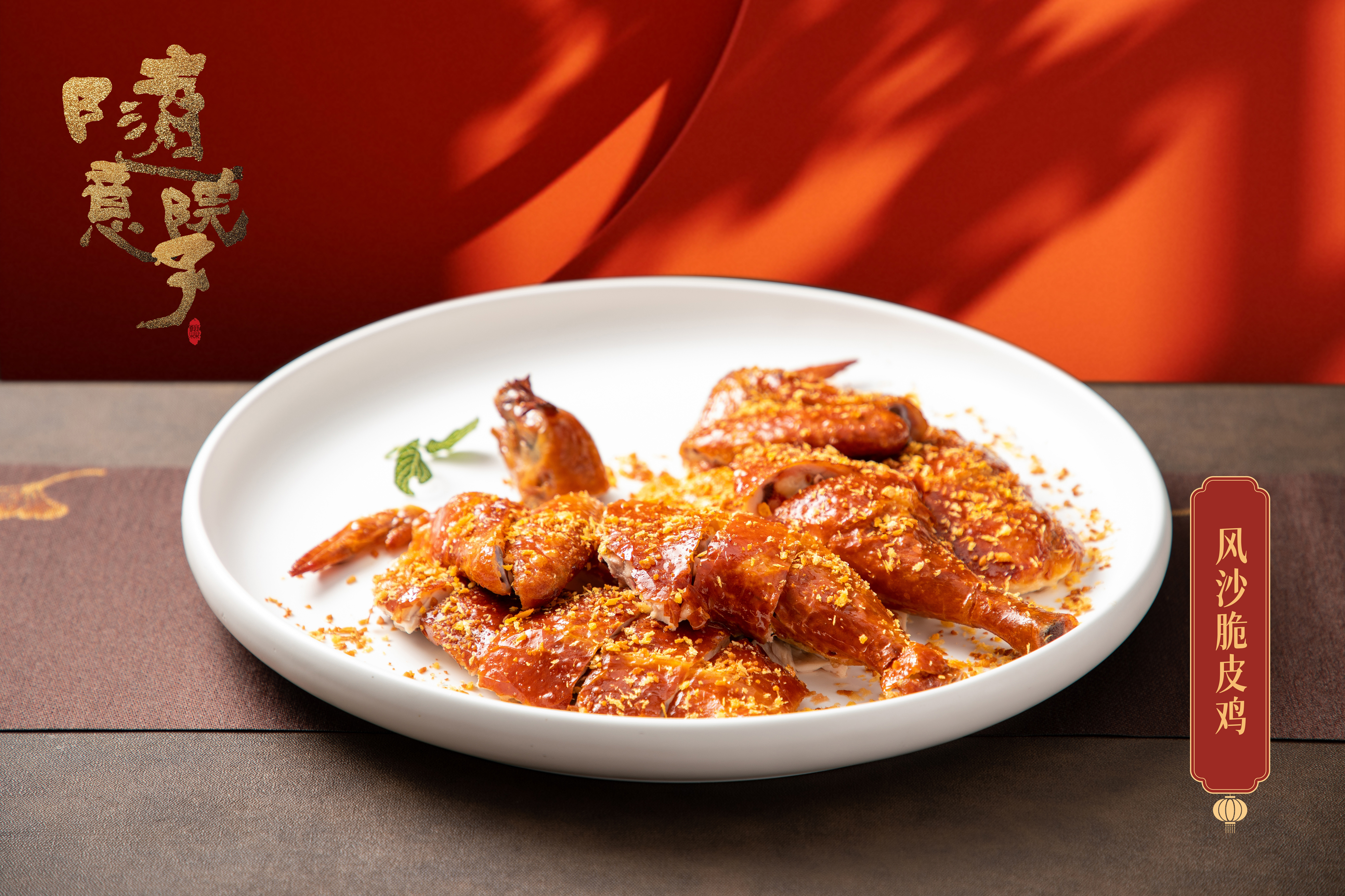 甄选散养走地鸡,经秘制脆皮工艺,外皮金黄酥脆,内里鲜嫩多汁,蒜香浓郁,寓意“大吉大利”,金玉满堂。