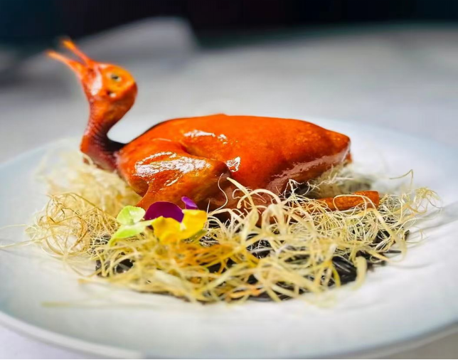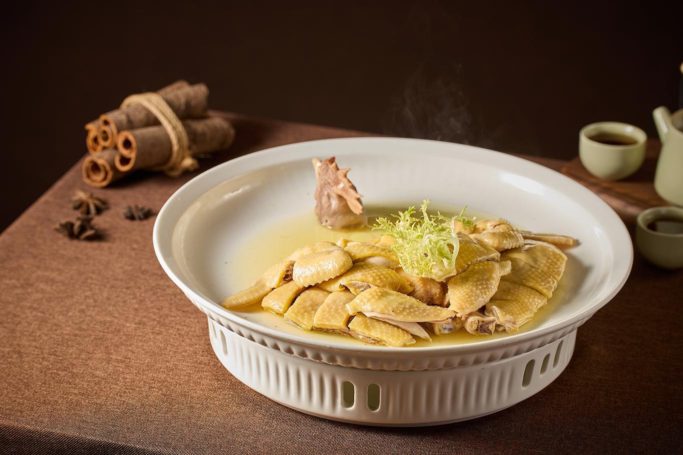 以九烤竹盐提鲜,赋予白切鸡竹韵咸香,肉质嫩滑、回味甘醇,荣获2024年创新菜银奖。