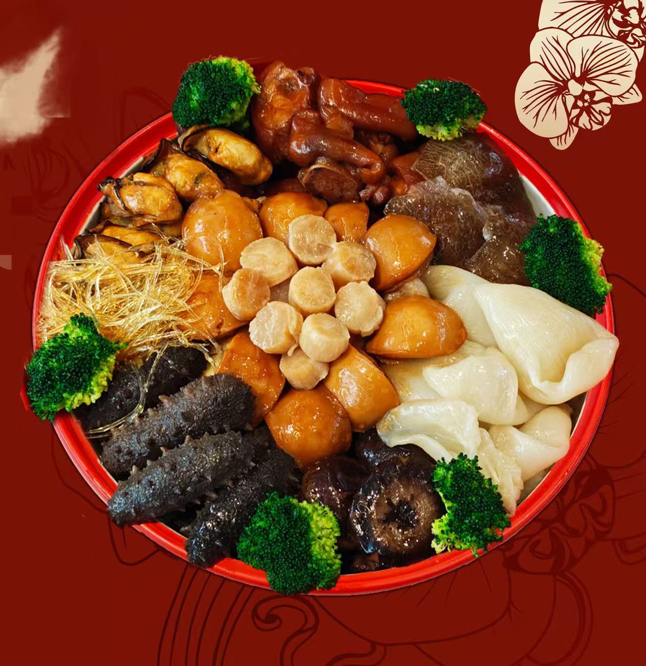 荟萃鲍参翅肚等食材,文火慢煨,金汤浓郁。寓意发财好市、事事就手,团圆宴客气派十足,年味与鲜味双满。