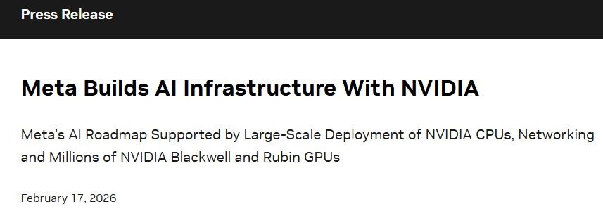 当地时间周二(2月17日),Meta和英伟达宣布,两家美国科技巨头建立了新的长期合作伙伴关系,涵盖本地部署、云和人工智能(AI)基础设施。