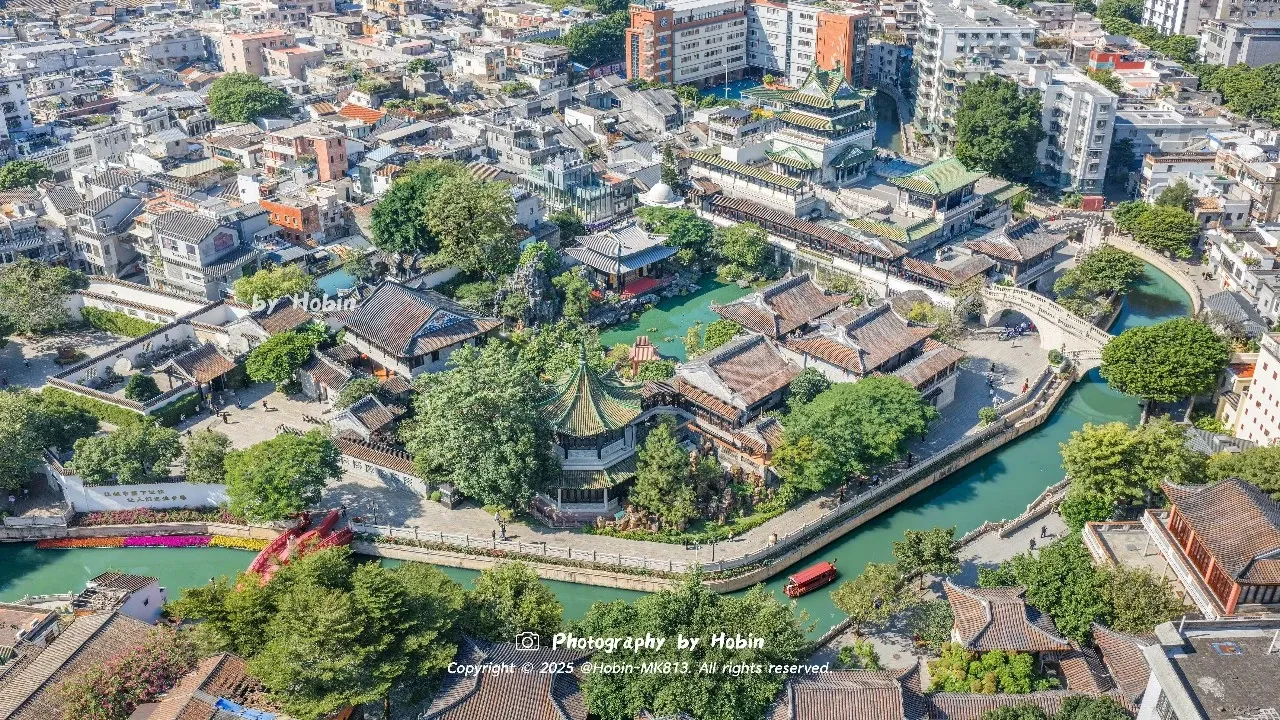 亭台楼阁错落有致曲径回廊蜿蜒相连耳边似乎还响起咿咿呀呀的粤剧唱段