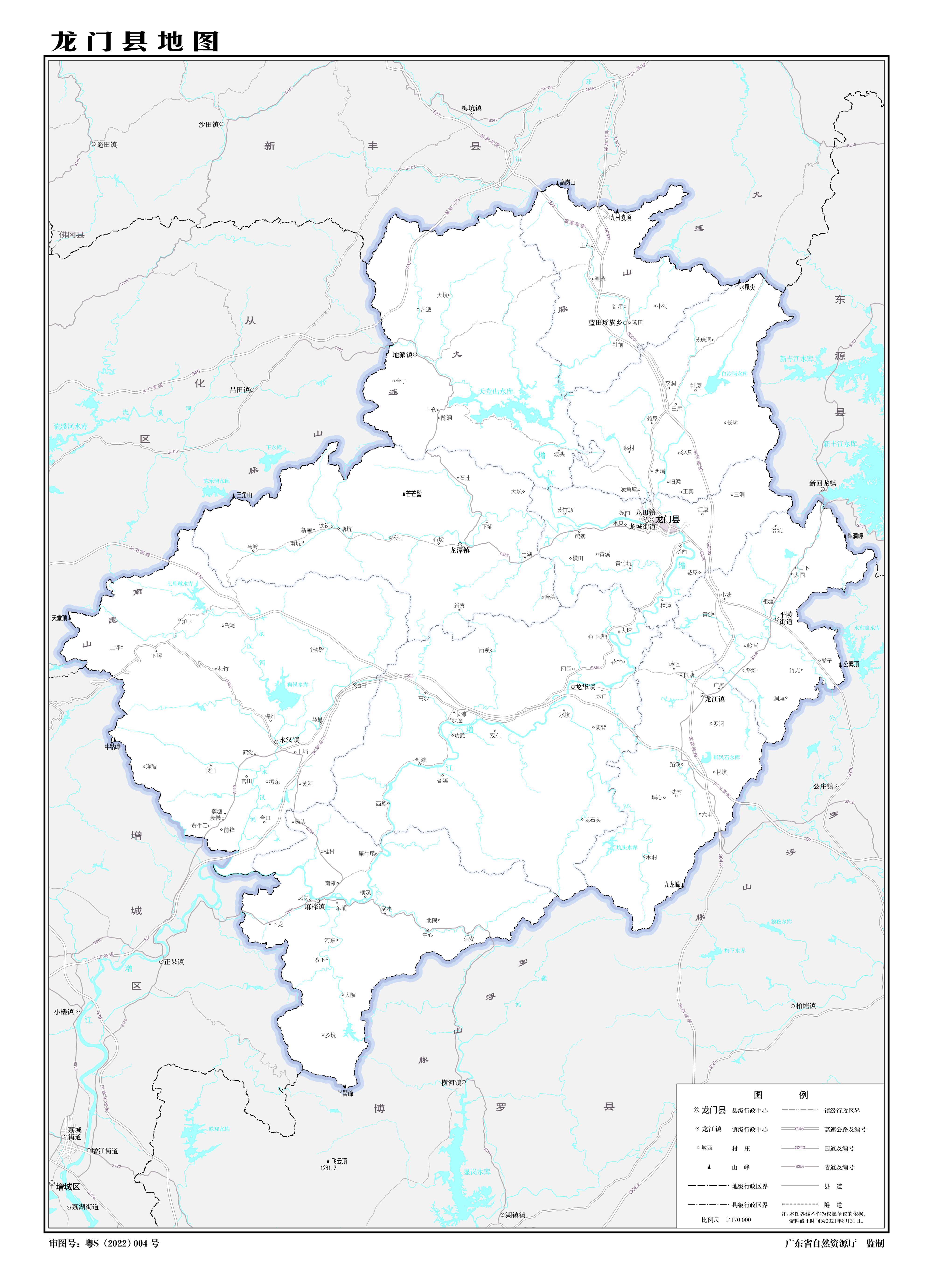惠州龙门县龙城街道、平陵街道、龙江镇、龙田镇及蓝田瑶族乡被纳入绿色发展区。图源:广东省公共地图服务系统