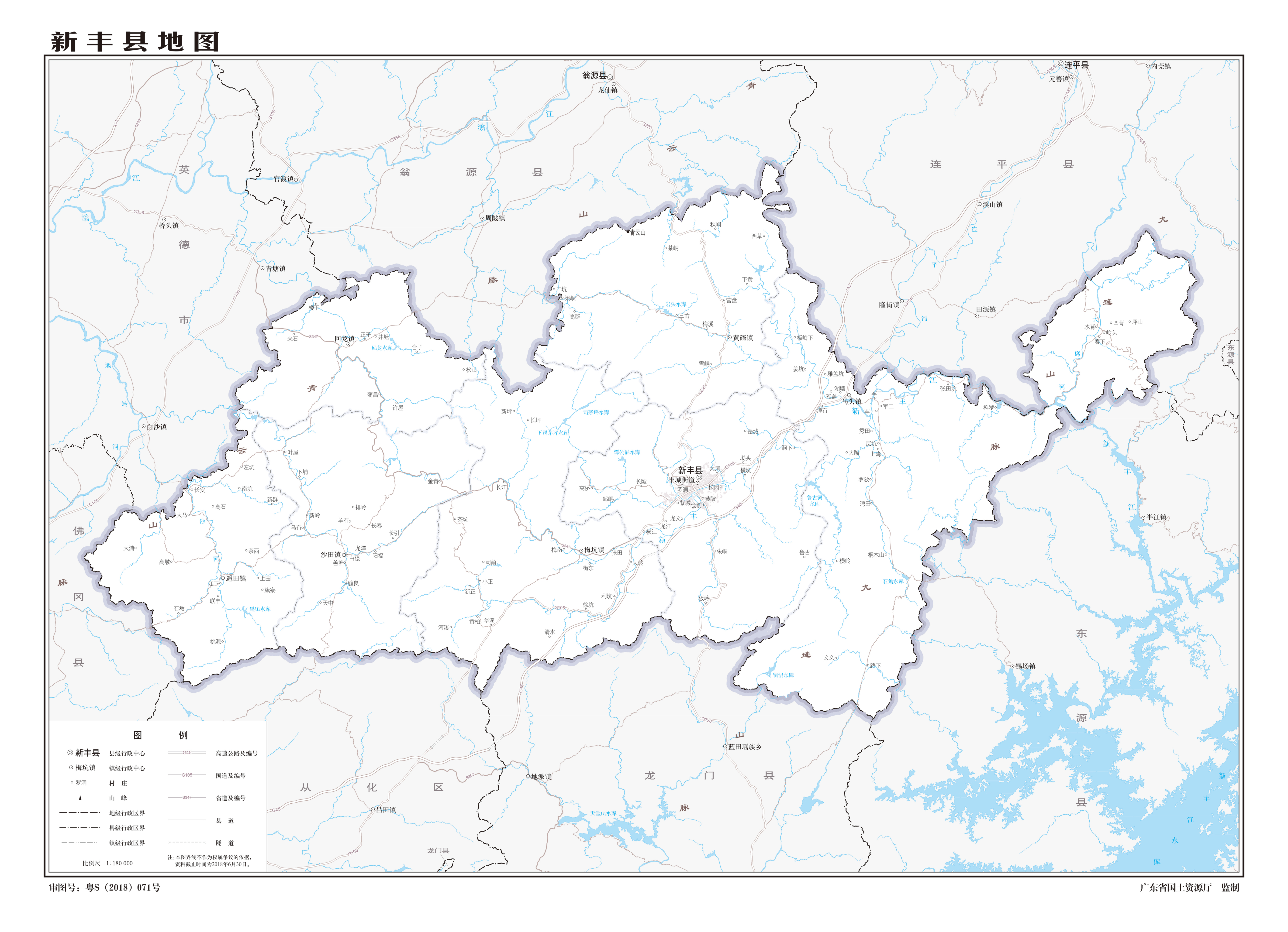 韶关新丰县丰城街道、马头镇、梅坑镇、黄磜镇被纳入绿色发展区。图源:广东省公共地图服务系统