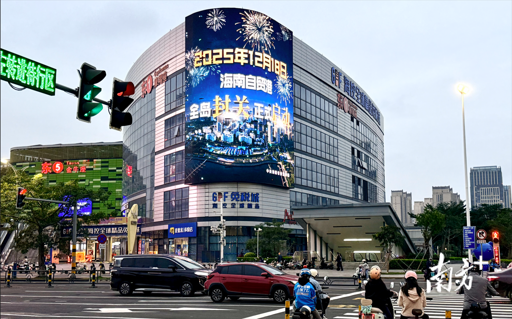 海口市区的日月广场免税城的大屏幕上,亮出了封关启动的海报。