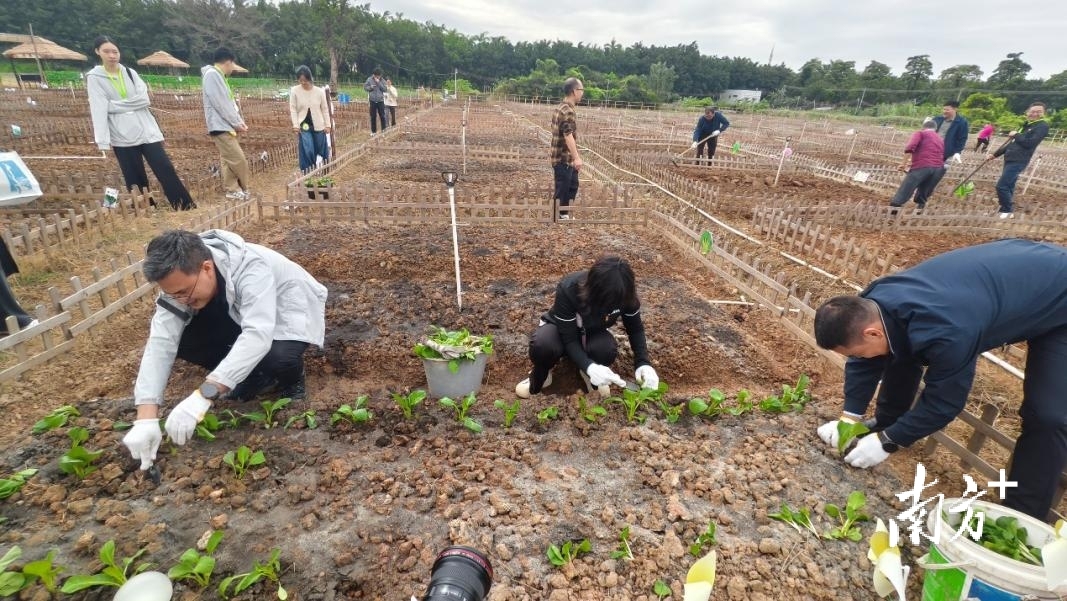2024年起,市规划和自然资源局番禺区分局统筹设计师团队和专业机构,构建起“政府搭台、规划设计师团队构思、社会力量实施、居民参与”的耕地保护协同机制。在“人民设计师”巧思下,这里划分了155块共享菜园供市民认领,成为落实“百千万工程”、建设“四小园”的生动典范。