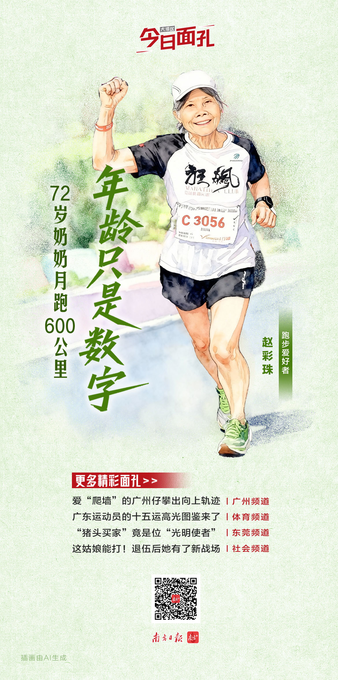 这位被本地跑友亲切称为“芝芝姐”的跑者,今年已经72岁。她不仅连续两年参加江门马拉松赛,月跑量更超过600公里,用奔跑诠释着“年龄只是数字”的生命力量。强者自强>>
