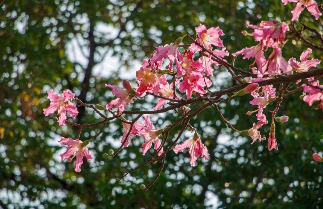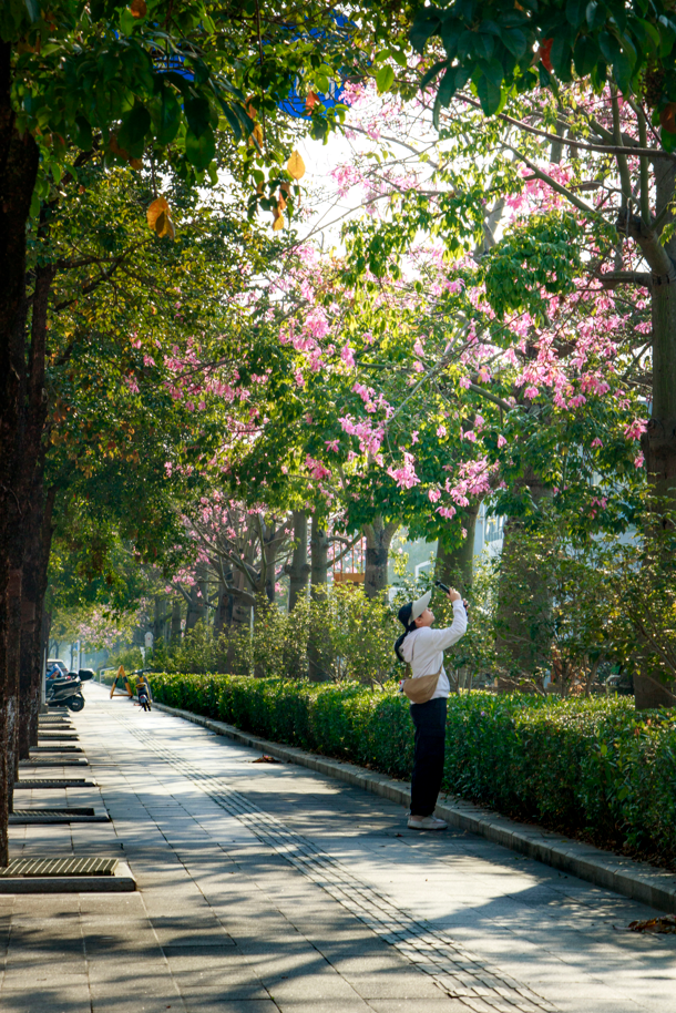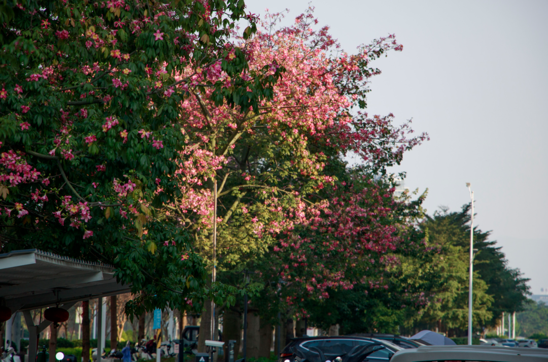 粉色的异木棉开遍了肇庆新区的街头与公园,让城市染上了一抹温柔的色彩。
