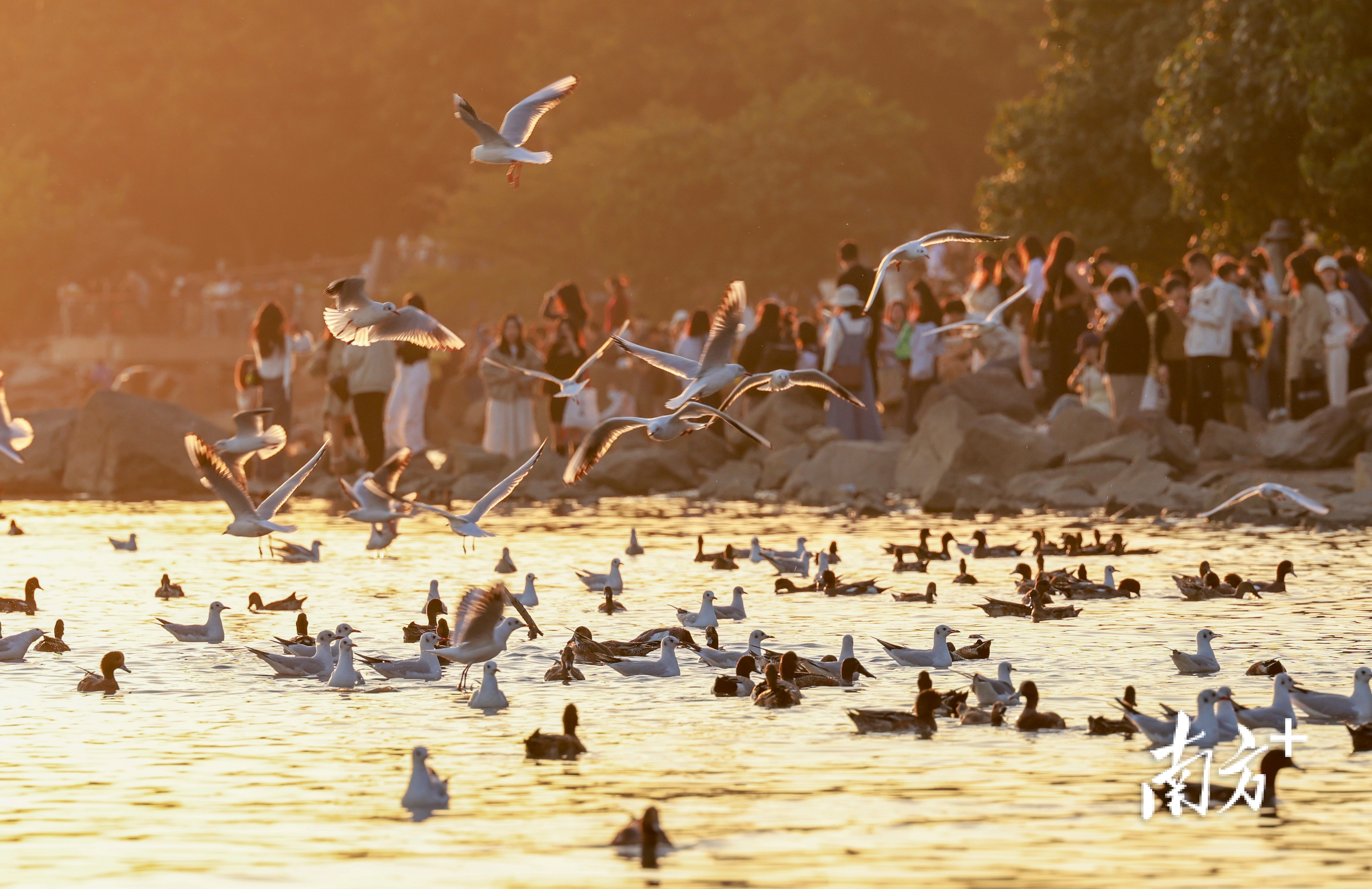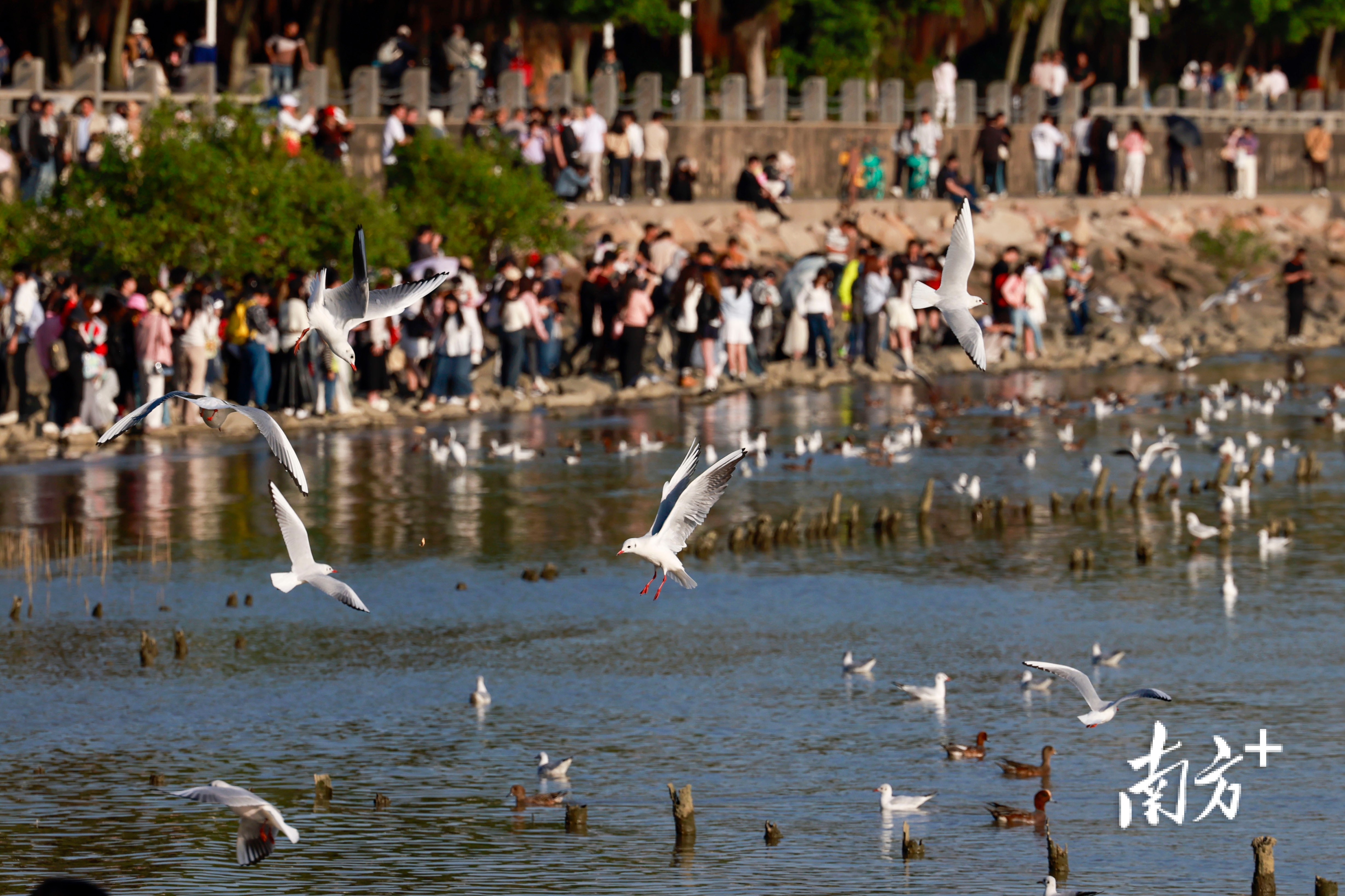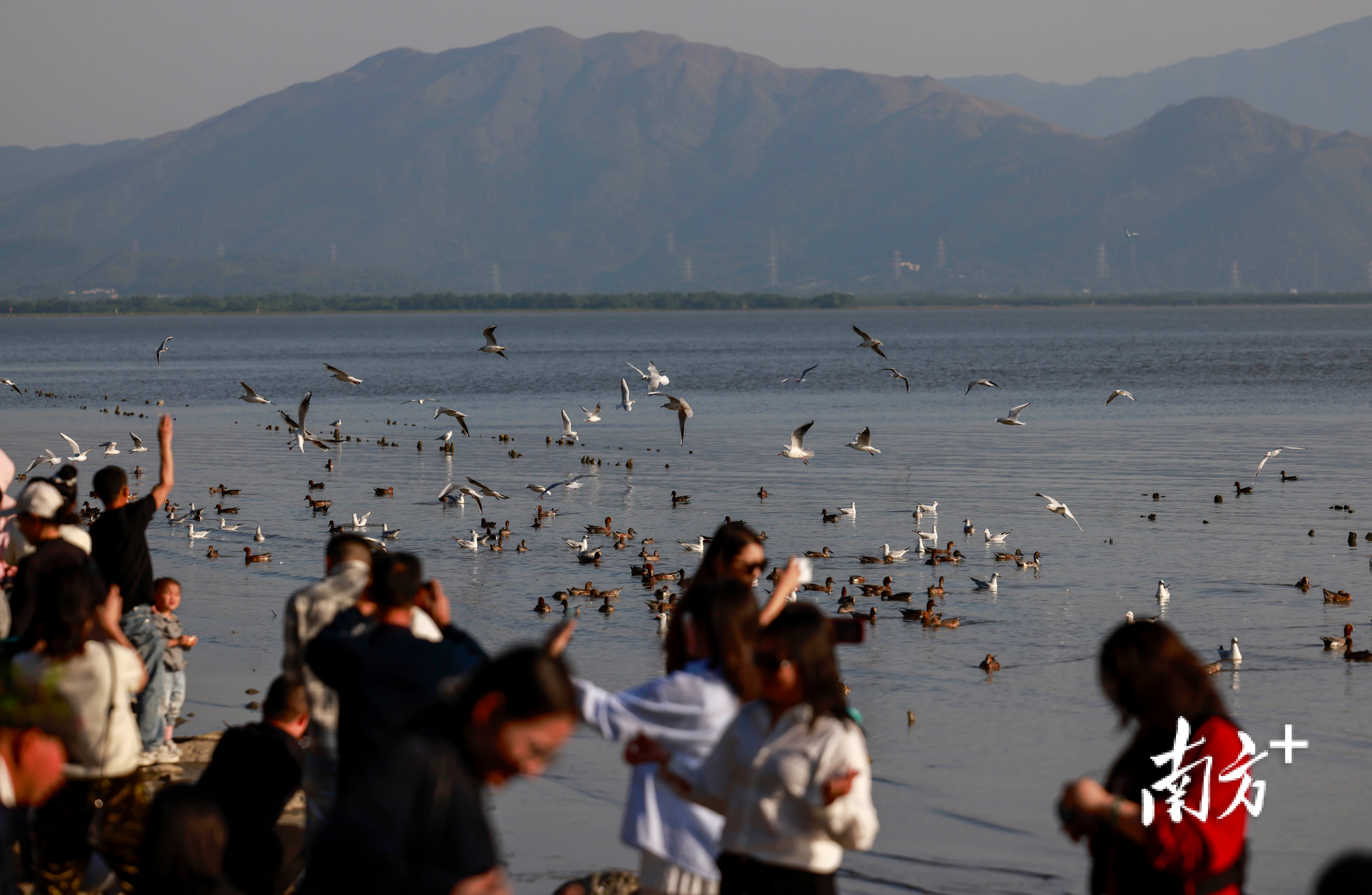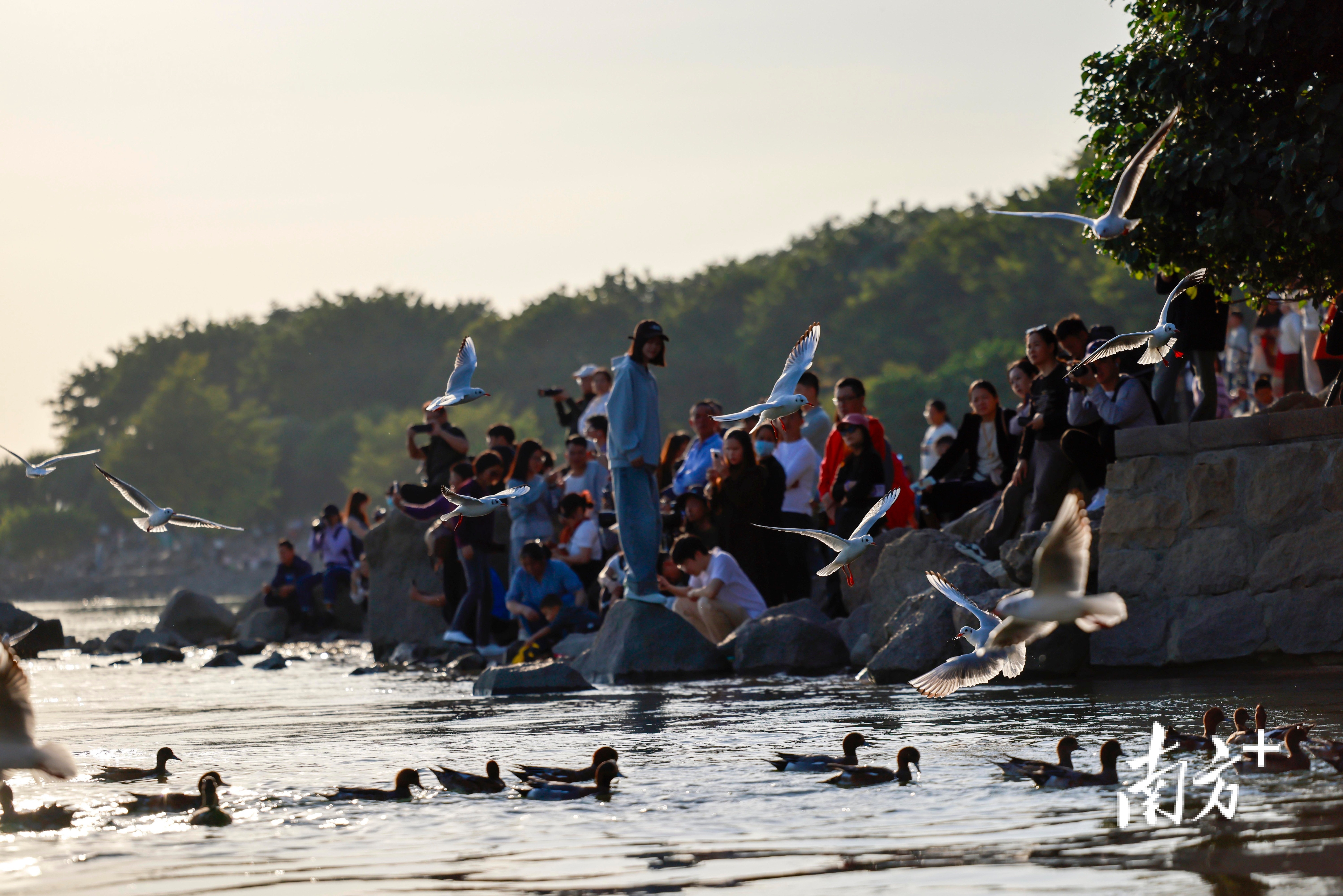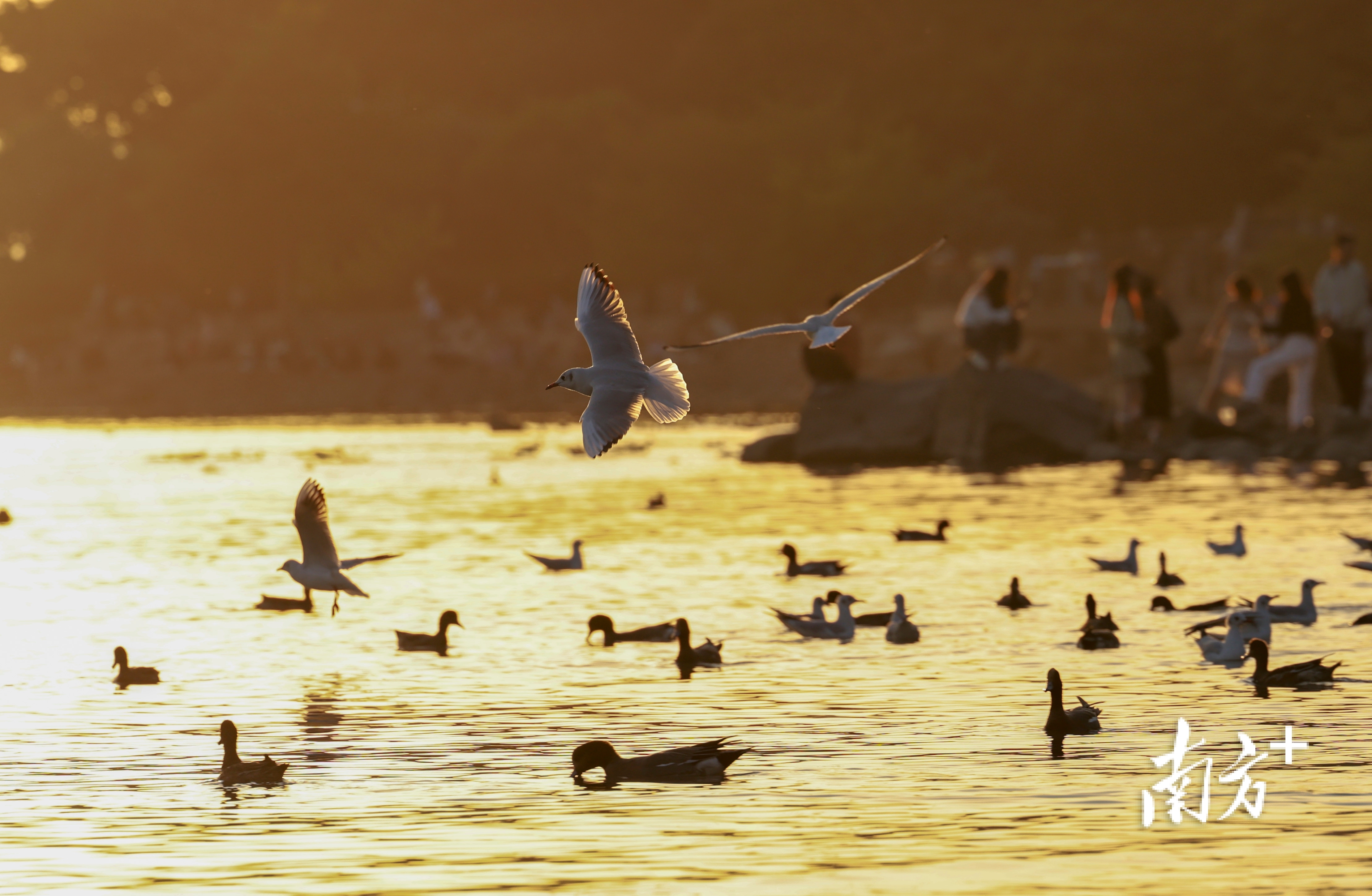 近段时间,不少市民前往深圳湾公园、红树林海滨栈道等地“打卡”,举起手机相机等“长枪短炮”,捕捉候鸟翩然起落的瞬间。日落时分,余晖为海面镀上暖金,鸬鹚归巢、鸥鸟齐飞,栈道上的人群渐渐散去,只留下候鸟在滩涂安然栖息。