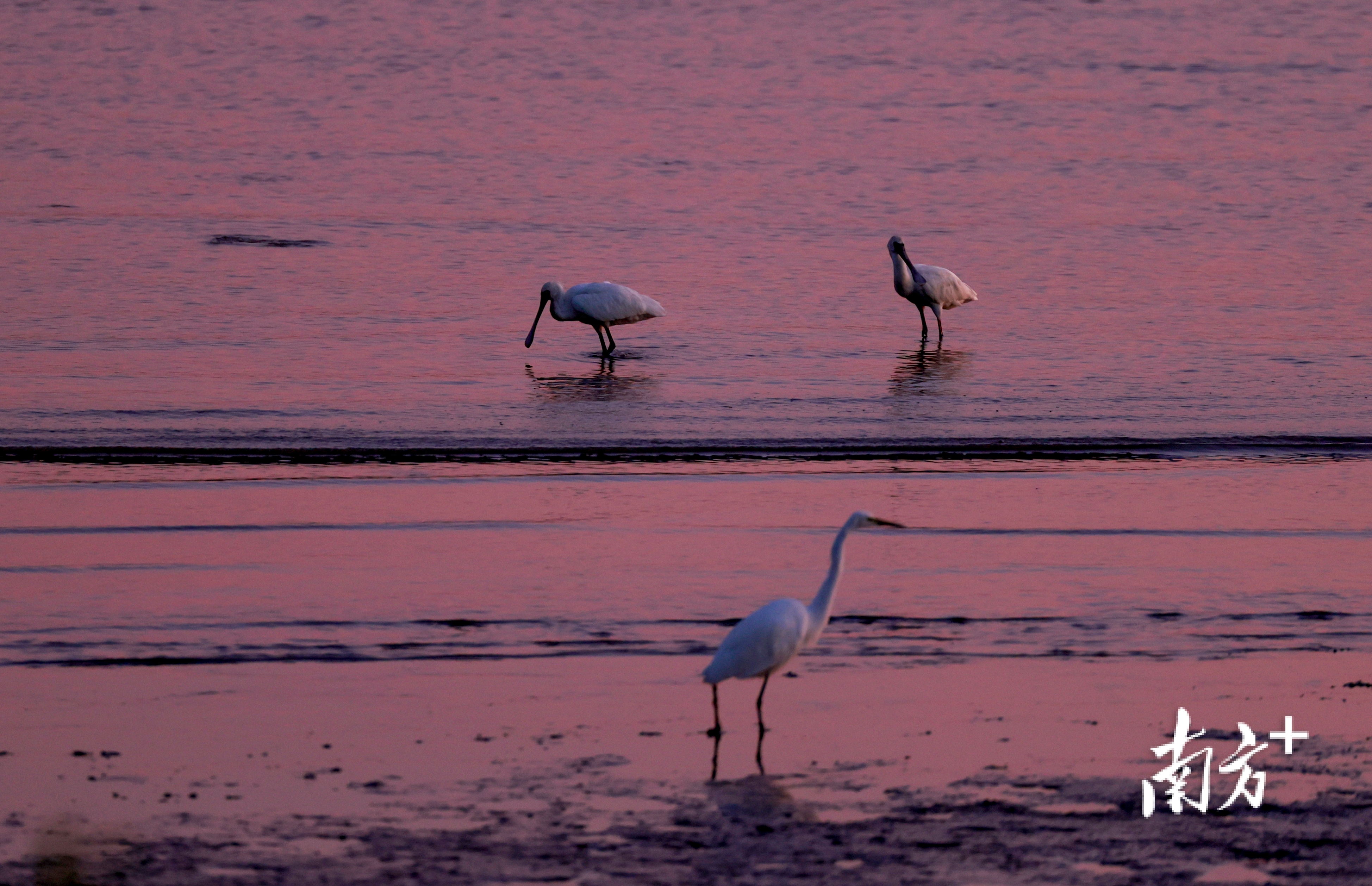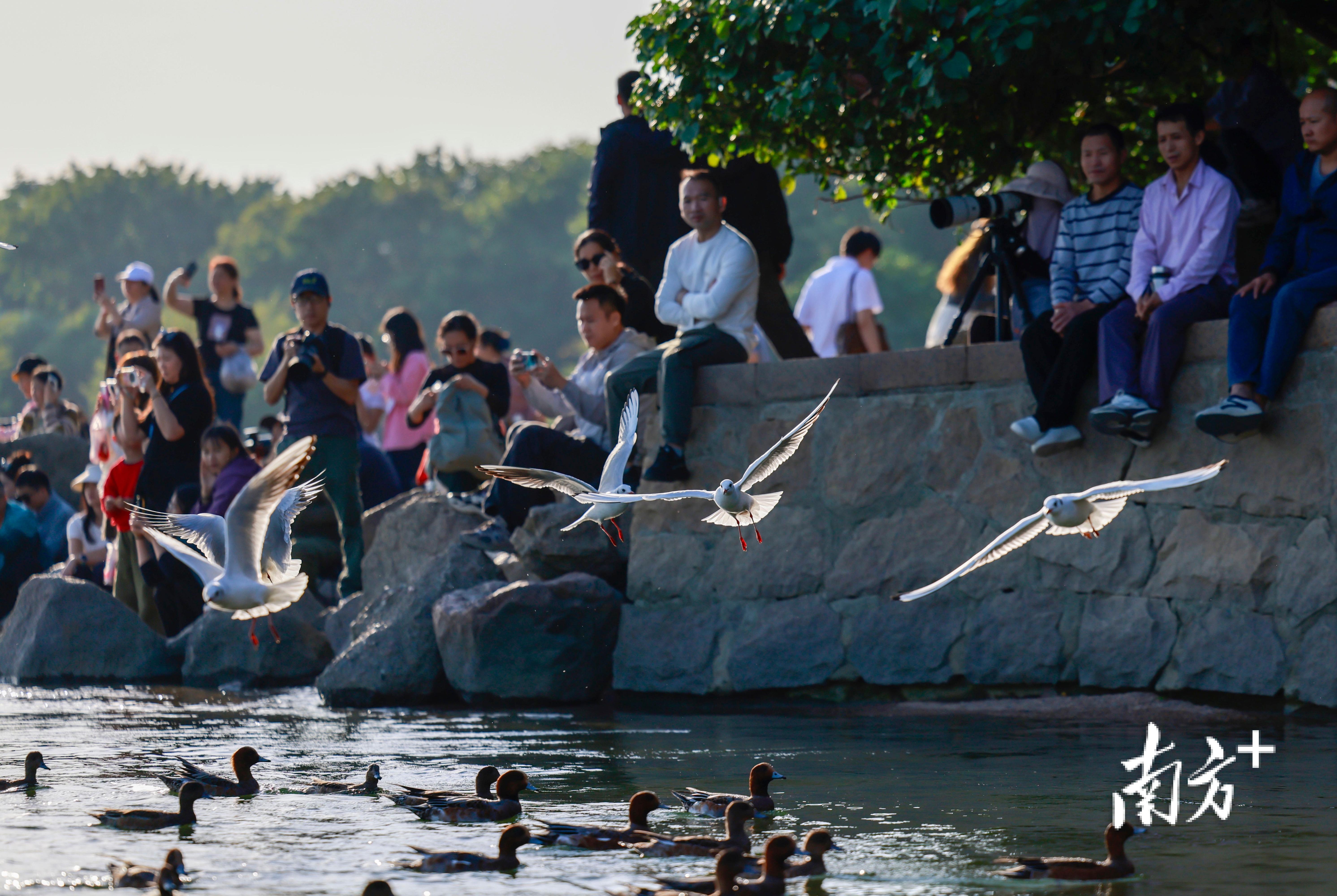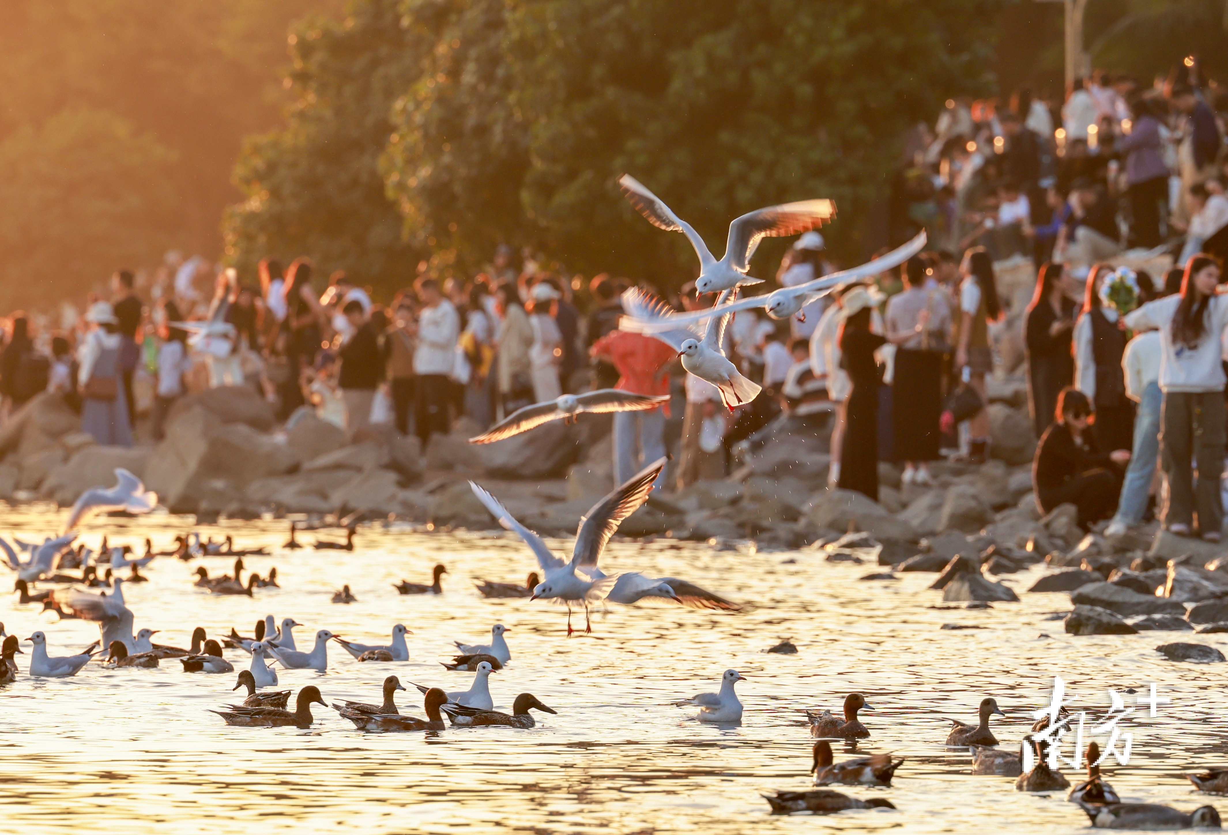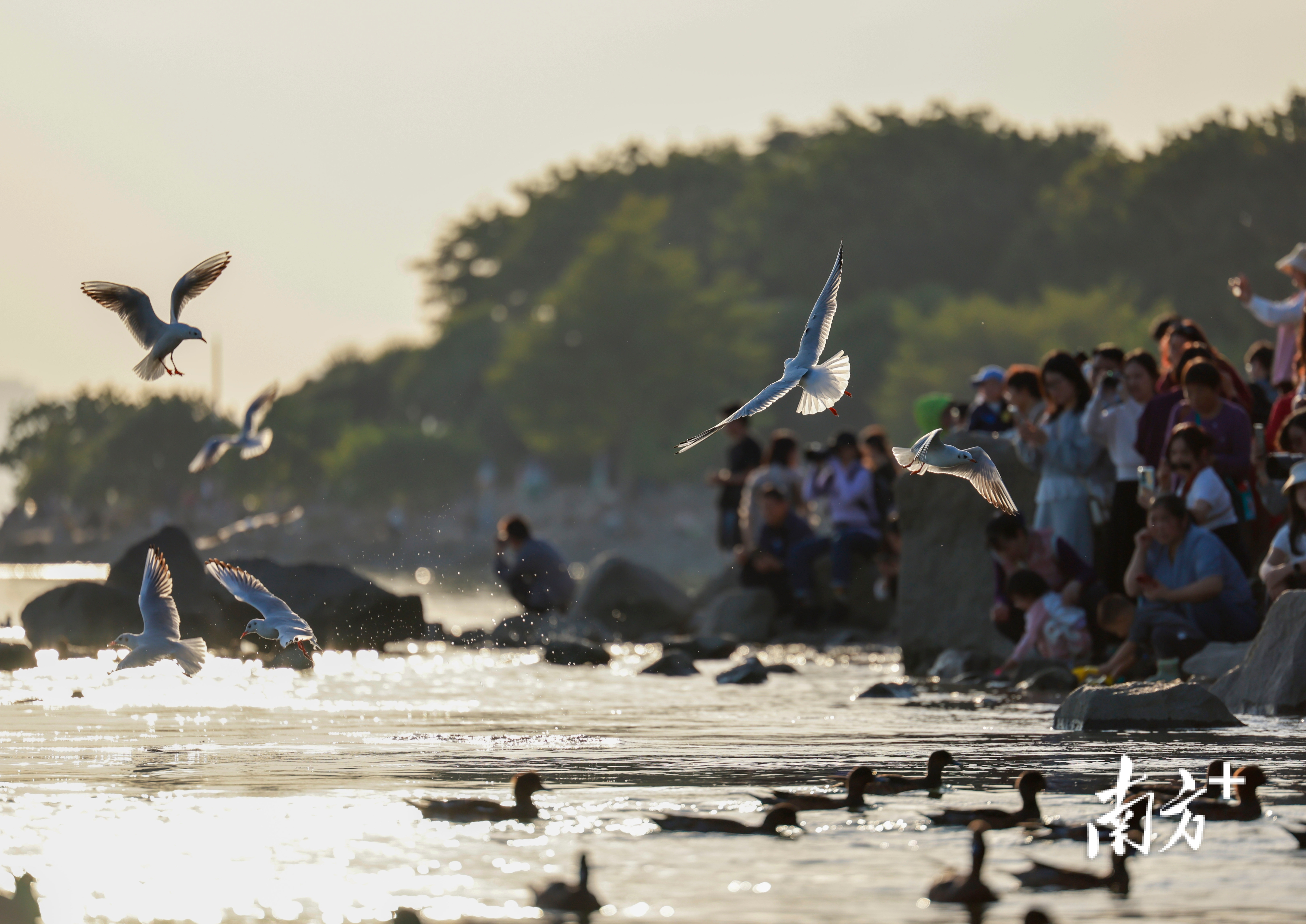 近段时间,不少市民前往深圳湾公园、红树林海滨栈道等地“打卡”,举起手机相机等“长枪短炮”,捕捉候鸟翩然起落的瞬间。日落时分,余晖为海面镀上暖金,鸬鹚归巢、鸥鸟齐飞,栈道上的人群渐渐散去,只留下候鸟在滩涂安然栖息。