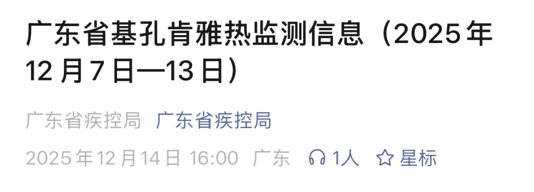 2025年12月7日0时至12月13日24时,广东省新增报告9例基孔肯雅热本地个案,未报告重症和死亡个案。个案分布在深圳市5例,广州市2例,佛山市和汕头市各1例。