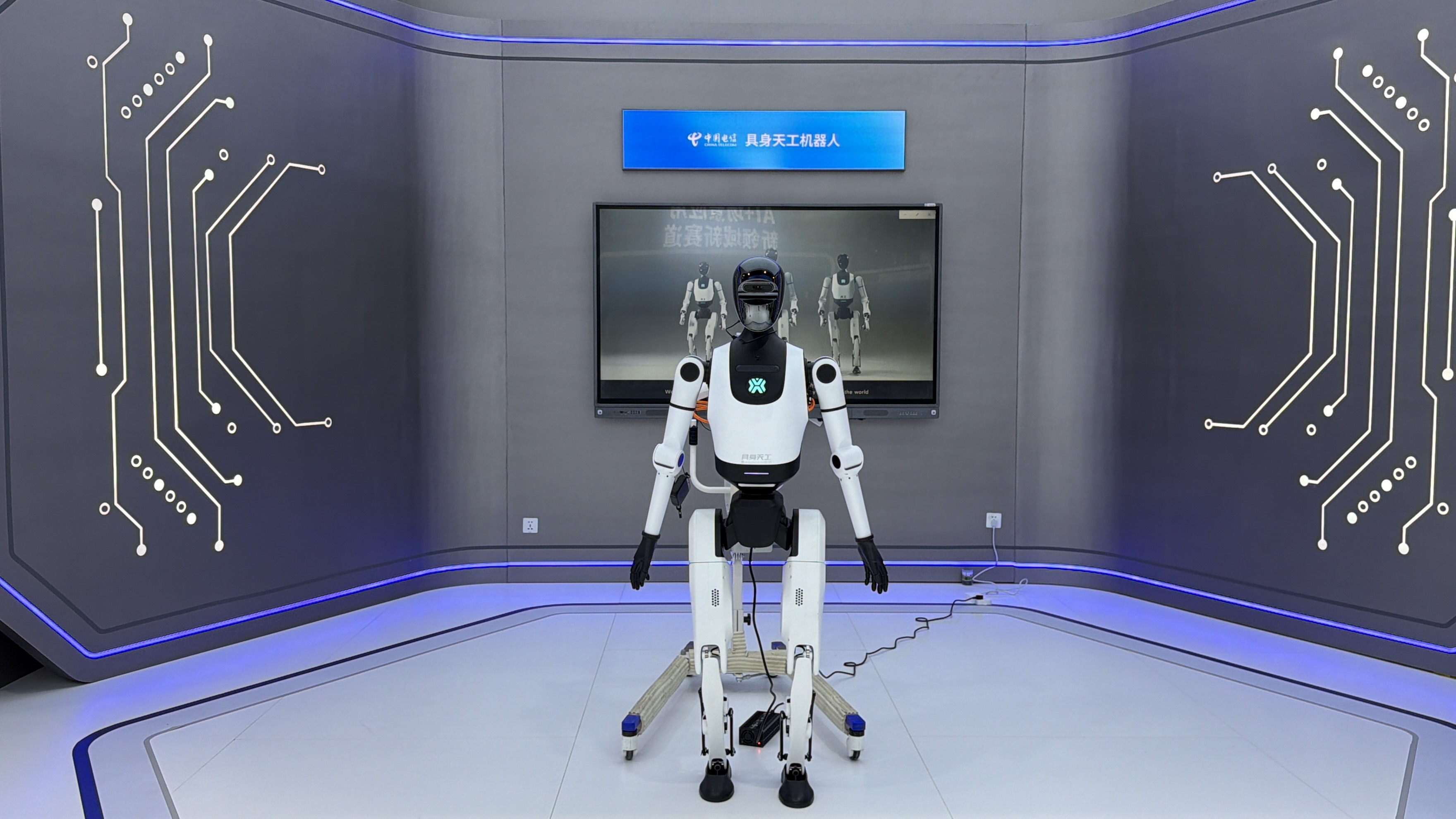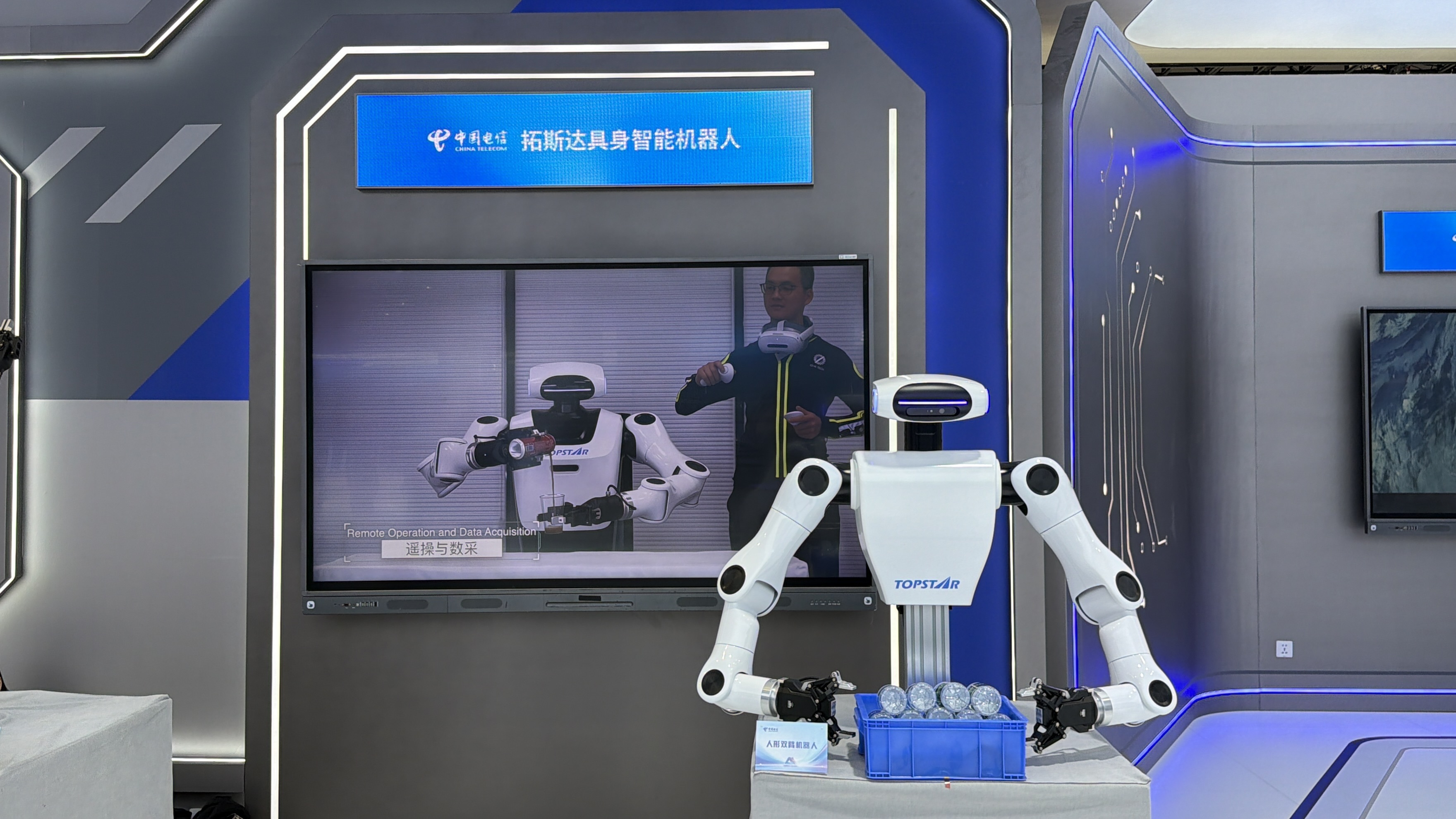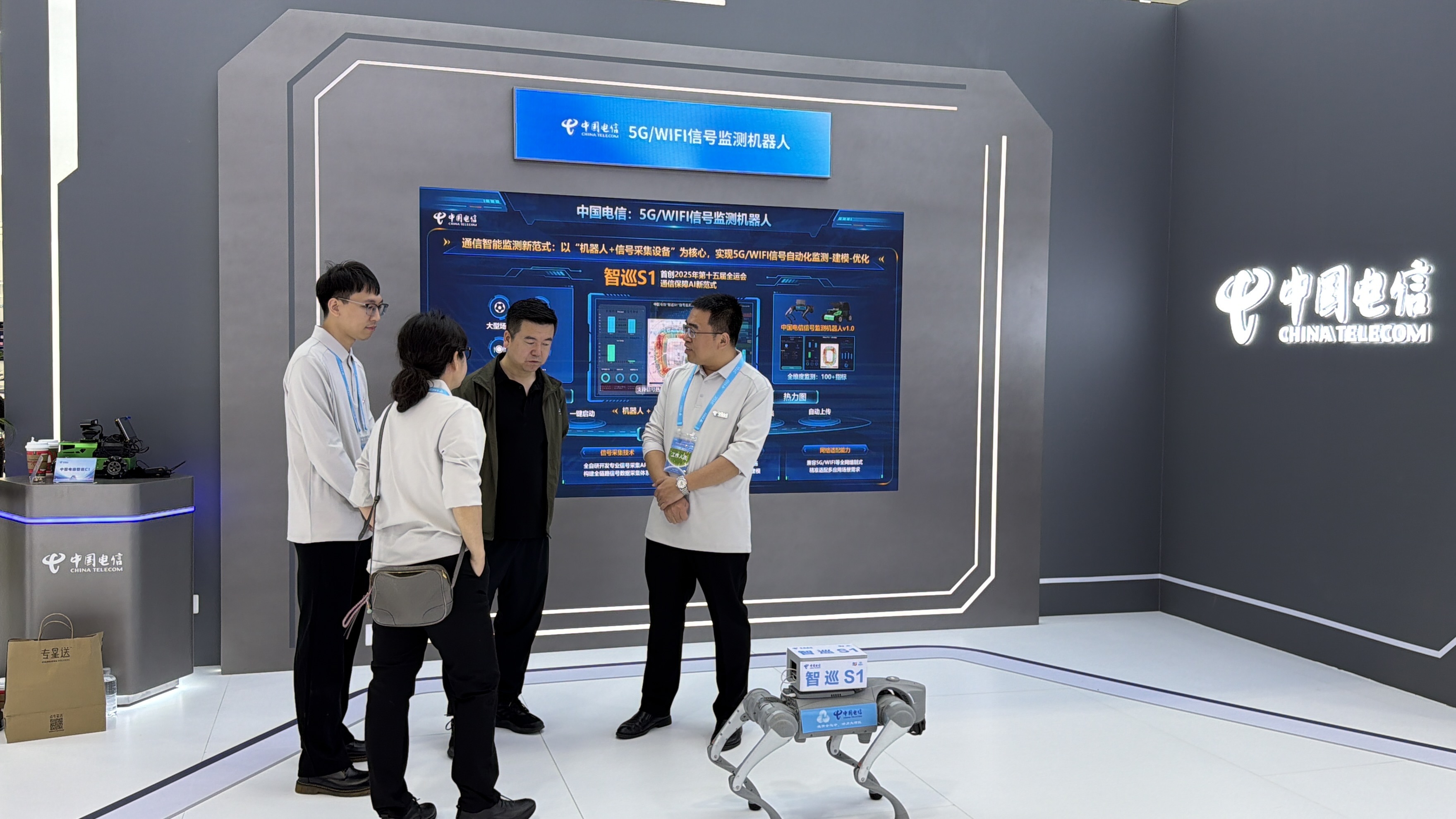 南方+记者注意到,主展区现场透露出中国电信当前瞄准的AI+新领域新赛道具体内容。一是低空相关,包括低空数字化塔台、低空巡检服务、低空农业服务、低空物流服务等,二是机器人,现场展出的机器人包括具身天工机器人、拓斯达具身智能机器人、多维触觉灵巧手、5G/WIFI信号监测机器人,此外,还有远枢具身大模型平台、5G远控无人机。