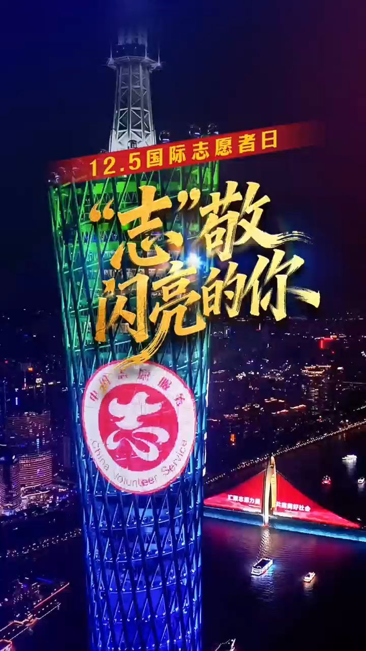 (12月5日,广州塔等地标为国际志愿者日亮灯。)