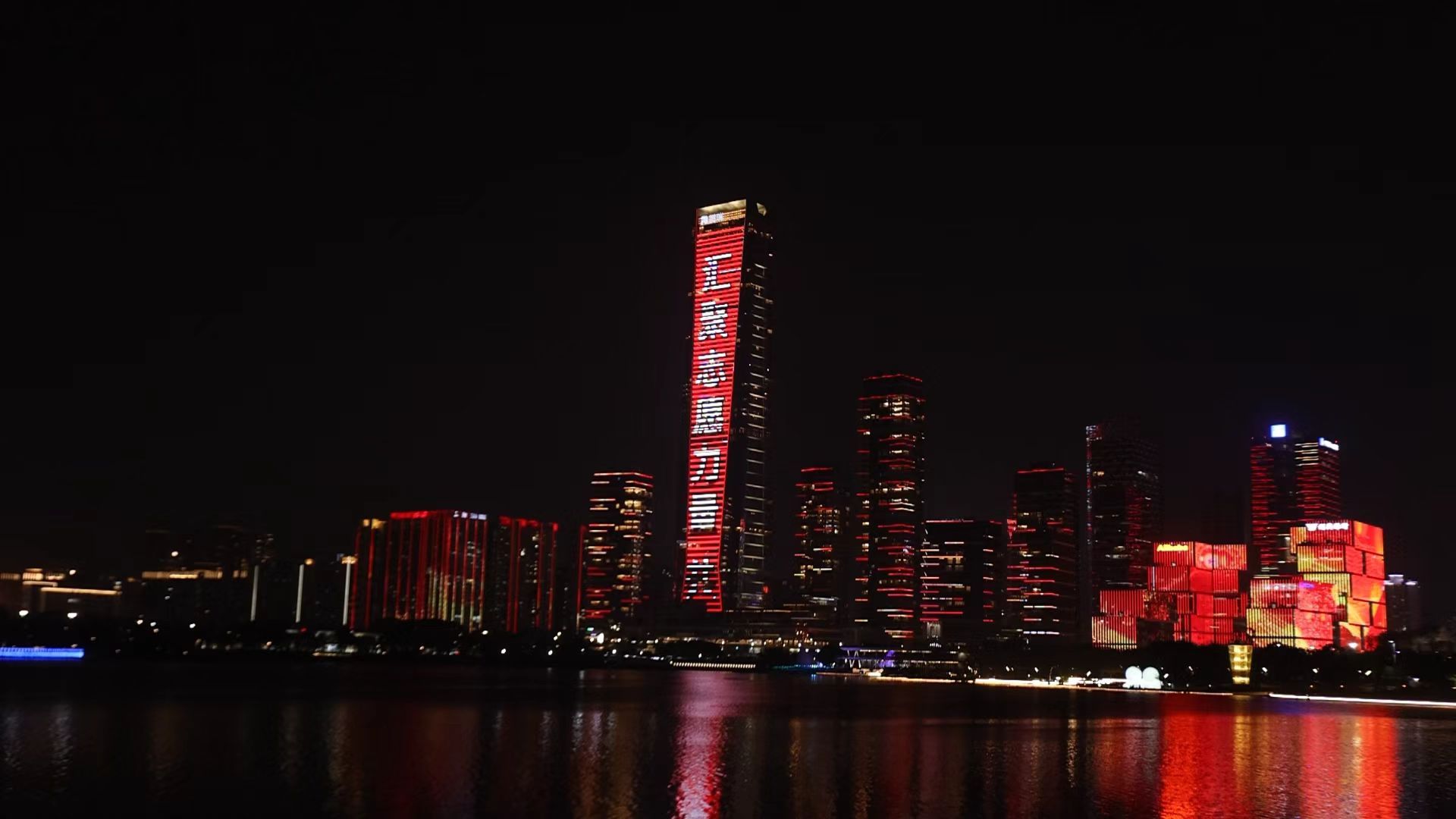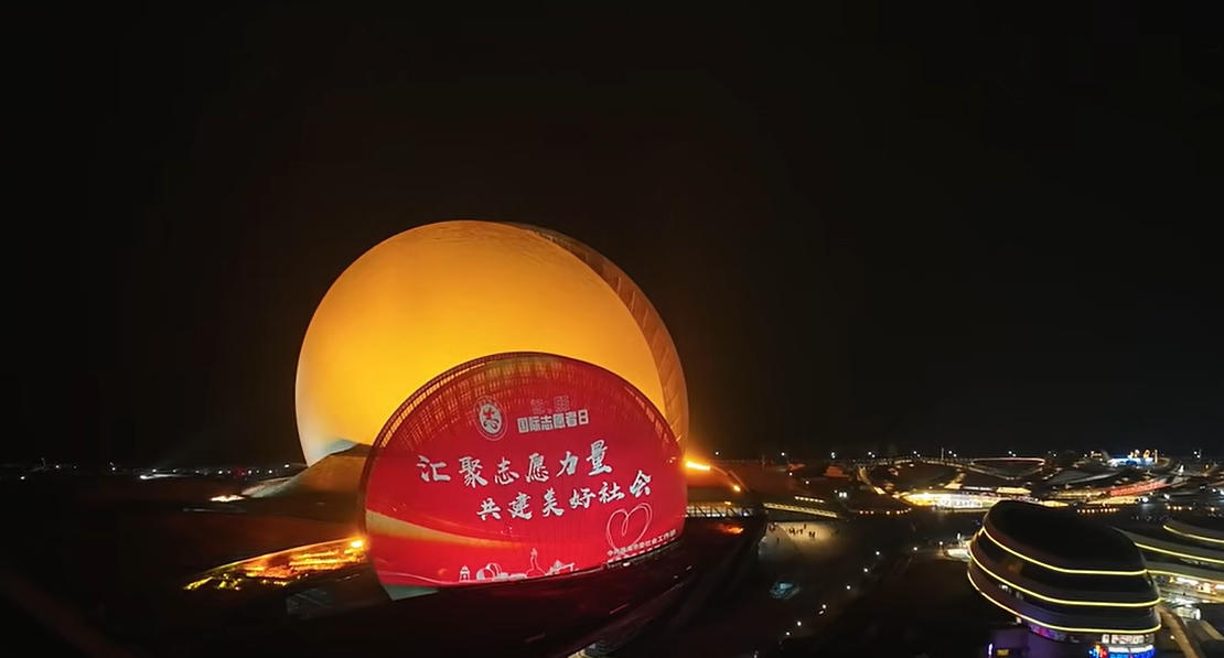 12月5日,珠海大剧院等地标为国际志愿者日亮灯。