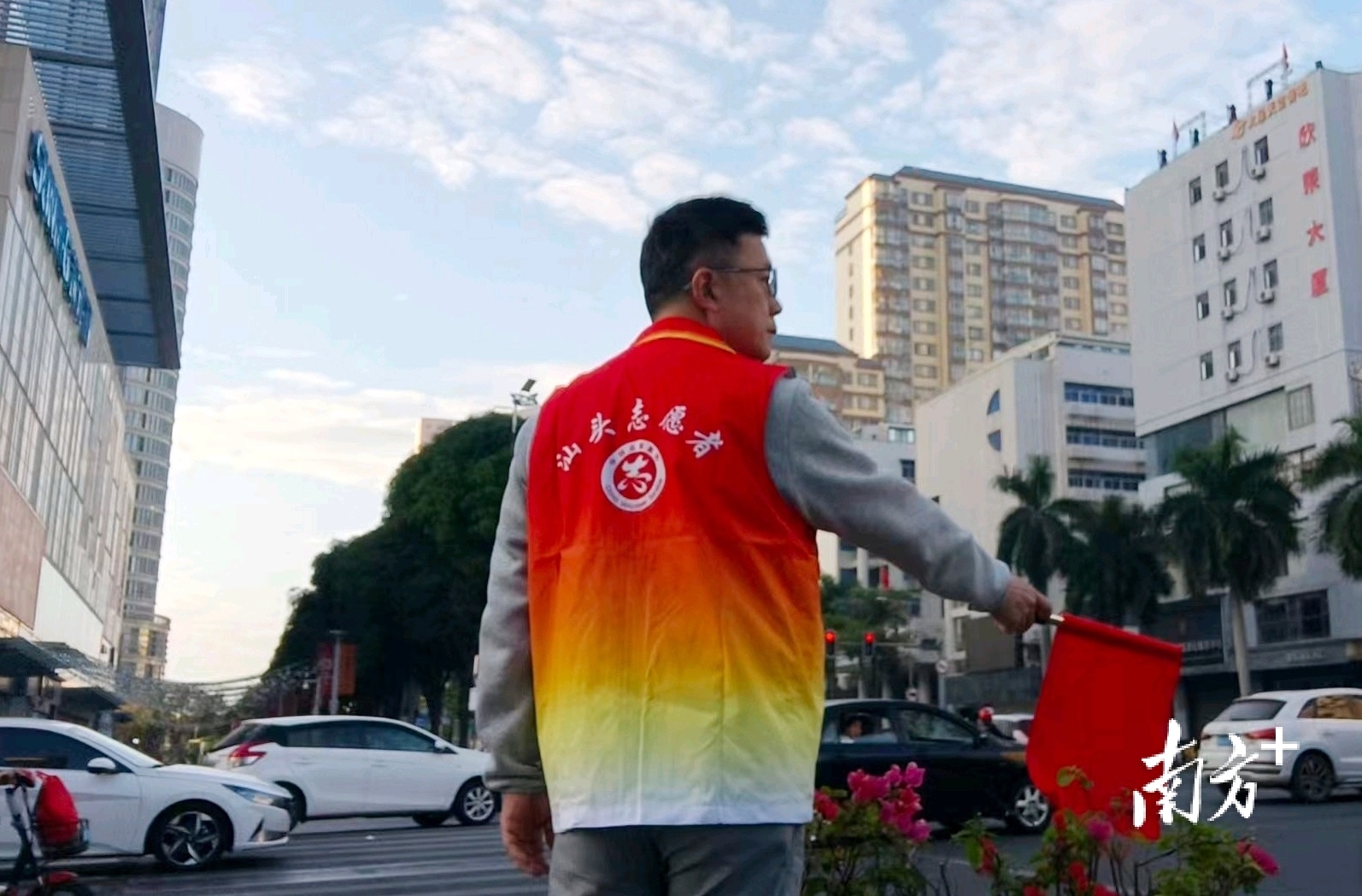 初冬的汕头市小公园开埠区游人如织,标志性建筑中山纪念亭吸引游客打卡留念。傍晚的交通高峰时段,在小公园街区的主要路口,总能见到身穿“志愿汕头”马甲的志愿者们手持劝导旗,协助交警维持秩序。他们耐心引导行人、非机动车遵守交通规则,成为鮀城一道动人的风景。
