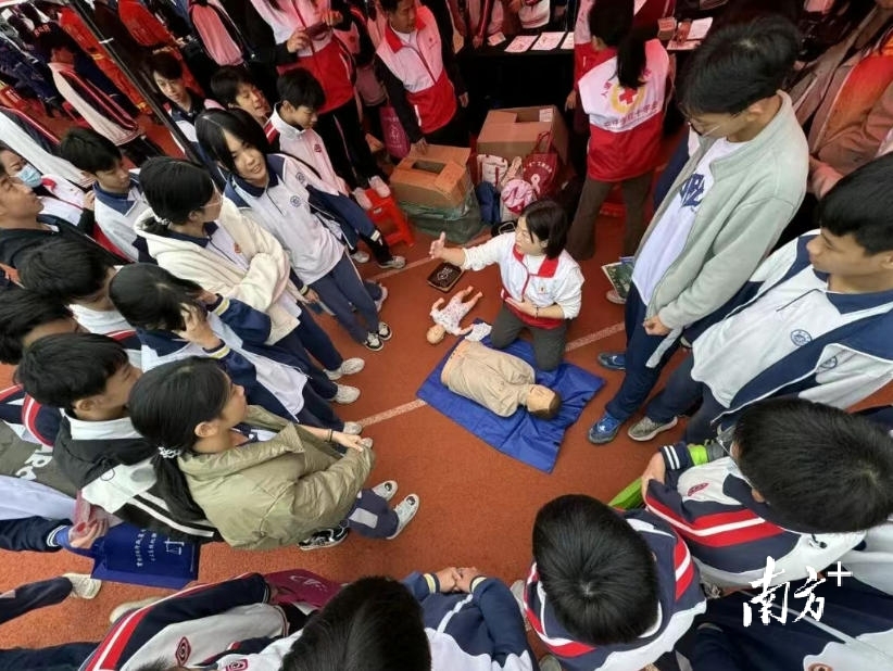 活动中,来自云浮市人民医院、市中医院的医疗志愿者为学生提供基础健康检测、爱眼护眼咨询和季节性流感预防知识科普。云浮市红十字会志愿者现场演示并教学心肺复苏、海姆立克急救法等实用技能,通过手把手指导,帮助学子们掌握急救技能。“每一声‘谢谢’,都是我们坚持志愿服务的动力。”云浮市人民医院志愿服务队负责人感慨道。