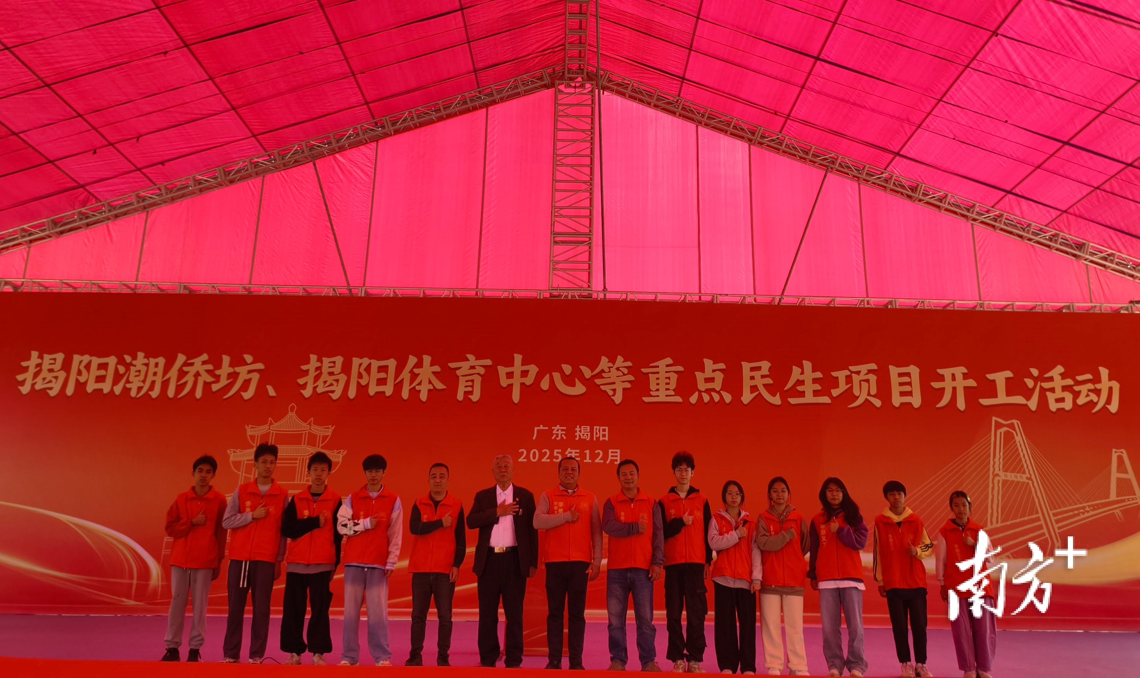 12月1日,在揭阳潮侨坊、揭阳体育中心等重点民生项目集中开工现场,一群“红马甲”穿梭其间,有的负责路口分流指引,有的维护会场周边交通秩序,有的作为嘉宾引导员在会场提供精准引导服务,为项目开工活动保驾护航,用行动展示和美揭阳的志愿力量。