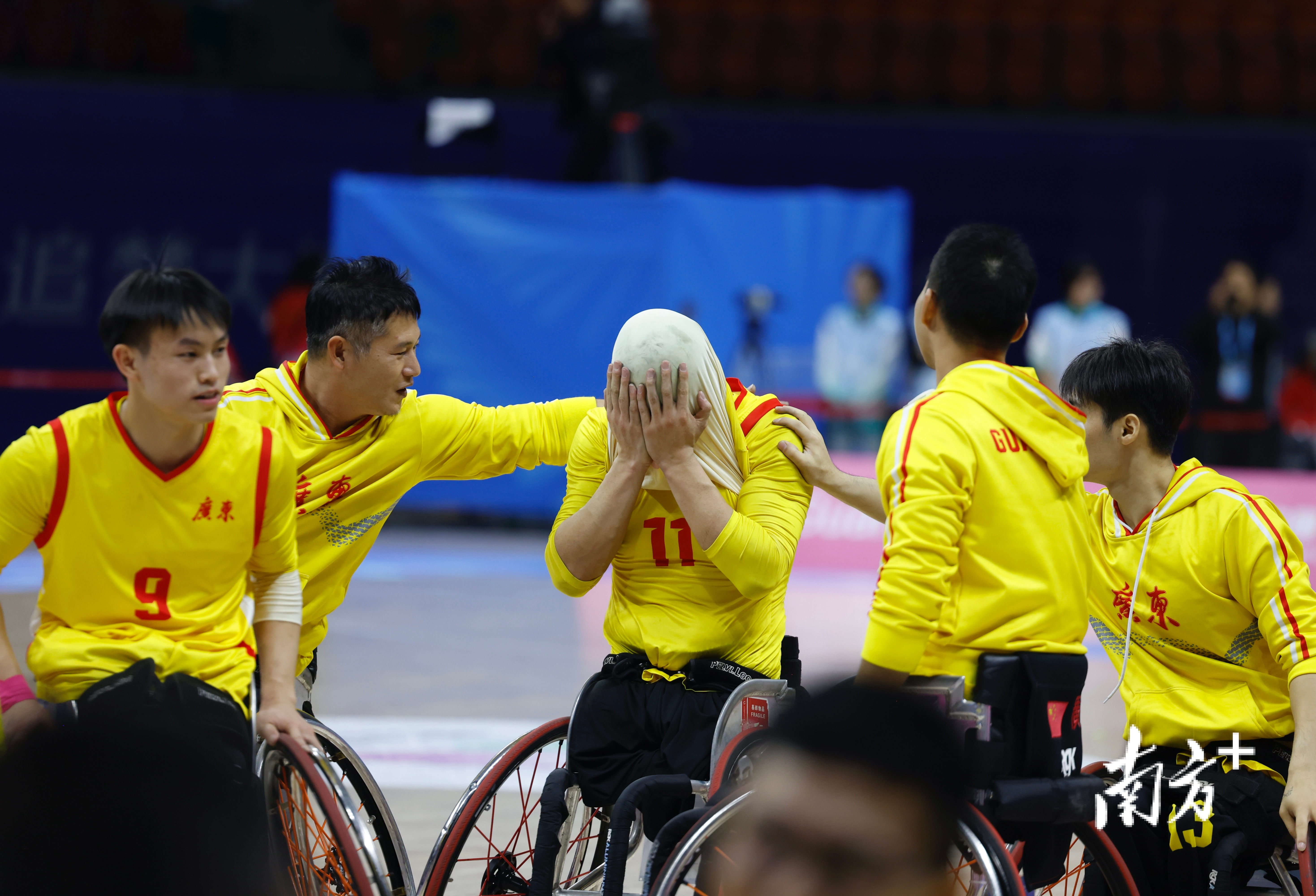 在此前的三人制女子组决赛中,面对劲敌北京队,广东队的姑娘们毫不怯场。赛场上,她们操控轮椅灵活穿梭,每一次推进、转身、卡位都干脆利落。战术配合上,队员们通过灵活走位与精准挡拆创造出手机会,用顽强拼劲与默契协作,最终成功夺冠,为广东队拿下该项目首枚金牌。