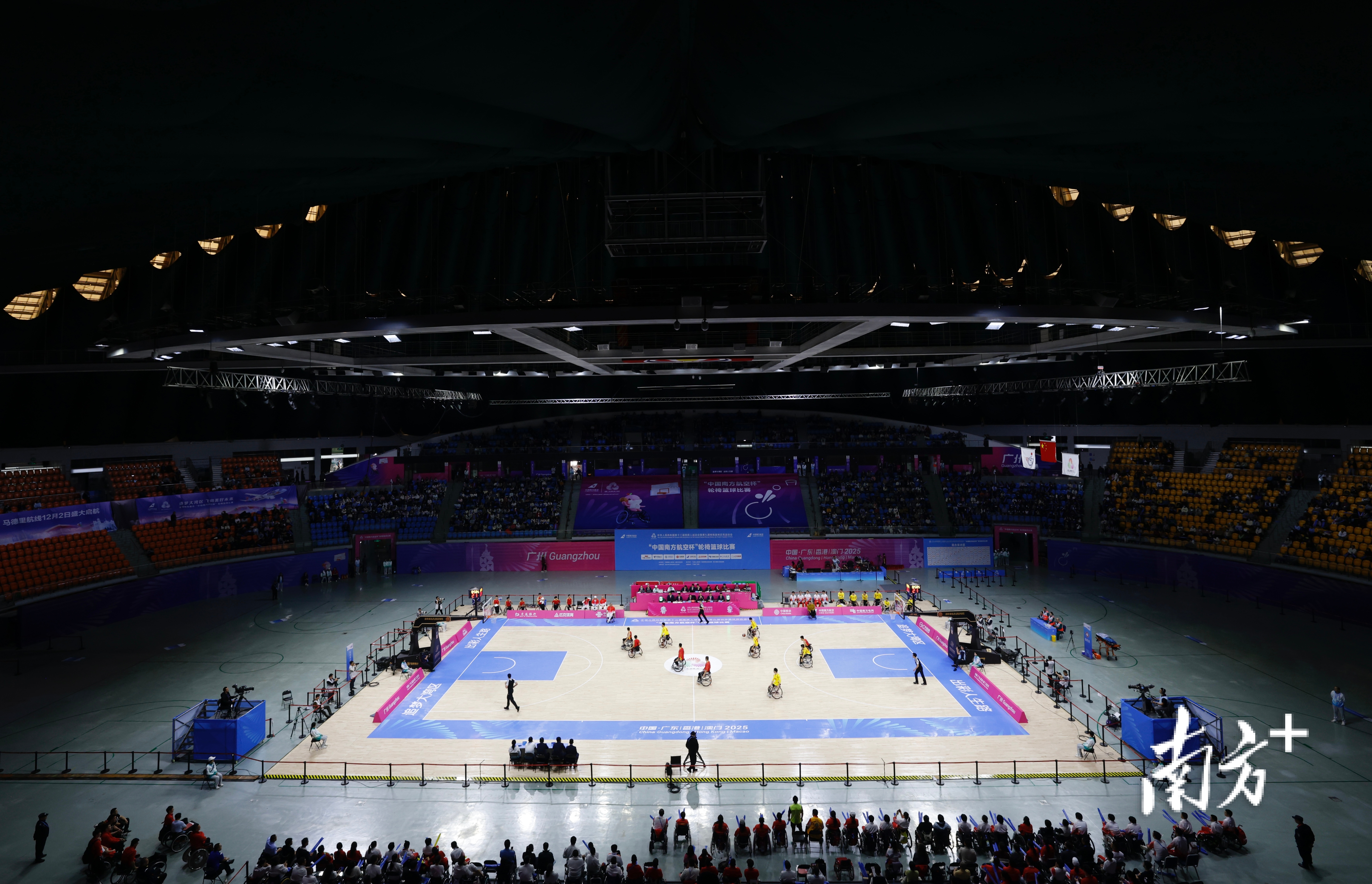 12月15日下午,全国第十二届残疾人运动会暨第九届特殊奥林匹克运动会轮椅篮球(五人制)男子组金牌赛在广州体育馆开赛,广东一团60:53战胜北京队,获得冠军。