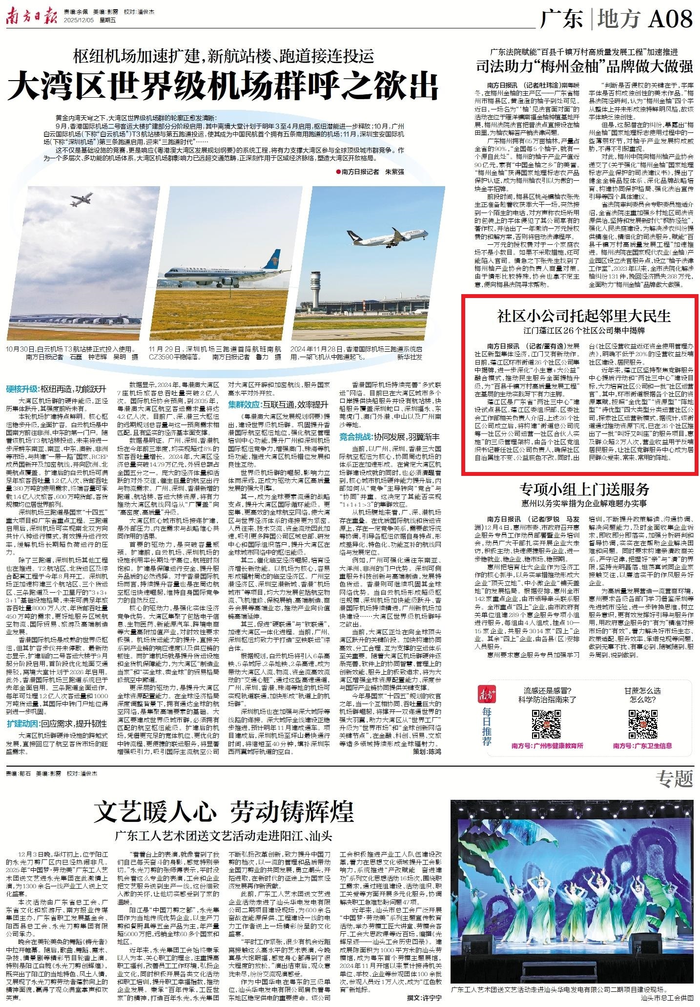 蓬江区是广东省“两社三中心”建设试点县区。蓬江区委组织部、区委社会工作部相关负责人介绍,上述26个社区公司成立后,将构建“街道总公司统筹—社区分公司运营—社区合伙人实施”的三级管理架构,由各个社区党组织书记兼任社区公司负责人,确保社区自治属性不变、公益底色不改。同时,出台《社区经营收益返还资金使用管理办法》,明确不低于20%的经营收益反哺社区建设、居民服务。