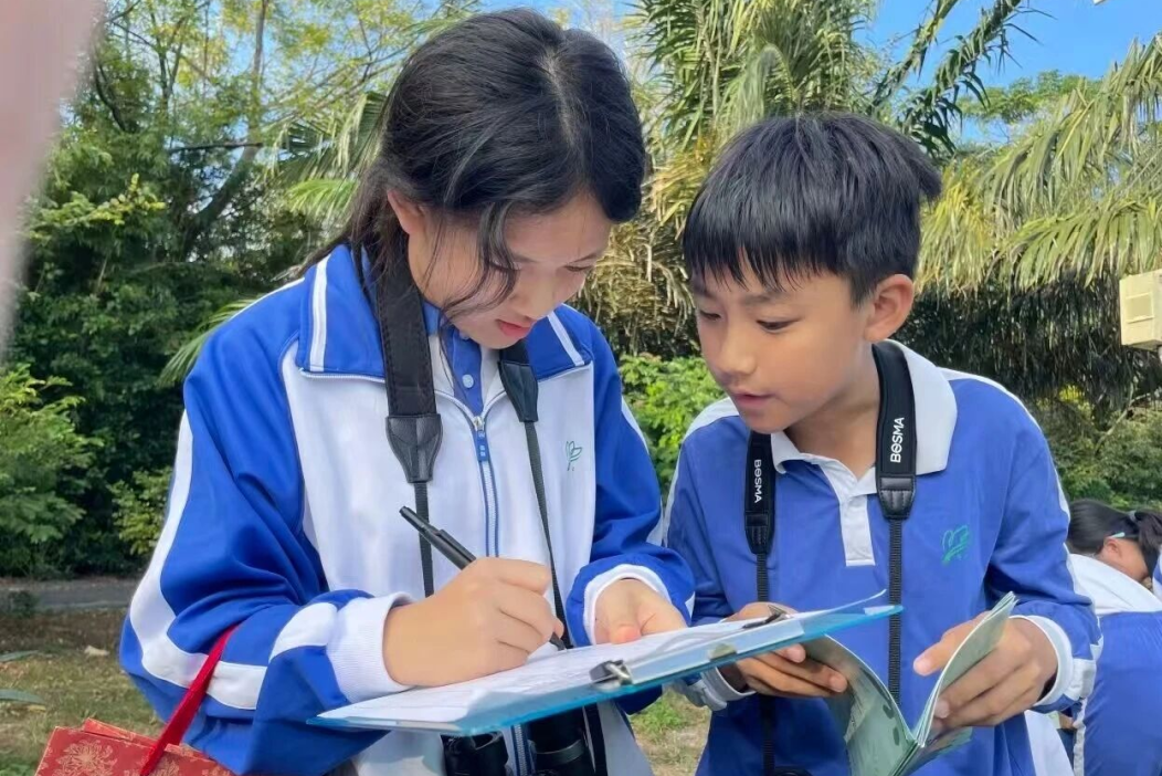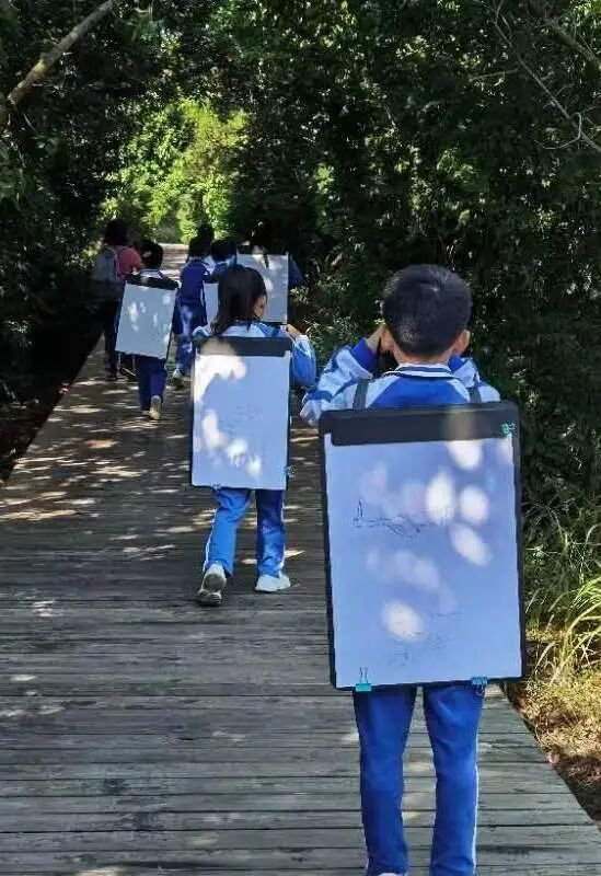 在老师的引导下,学生们分成几个观察小组,配备望远镜、鸟类图鉴和记录本,将科学观察、语文记录、美术写生融为一体,观察候鸟的迁徙与生活,在真实的自然场景中开启综合实践活动。