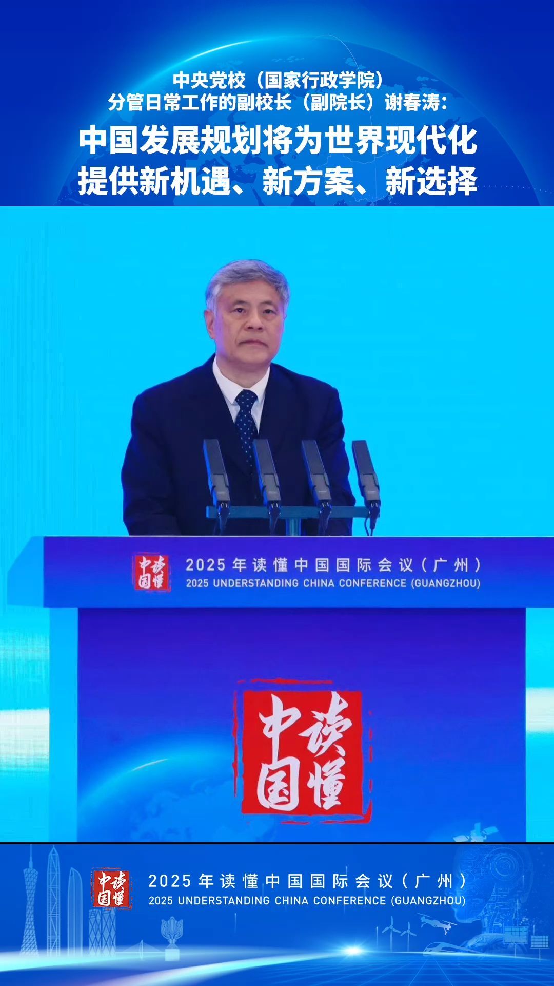 “读懂中国,关键要读懂中国式现代化,读懂中国为实现这一宏伟目标进行的战略规划。 ”12月1日上午,2025年“读懂中国”国际会议开幕式在广州举行。在大会演讲环节,中央党校(国家行政学院)分管日常工作的副校长(副院长)谢春涛围绕中国制定实施发展规划的经验做法,同大家交流。