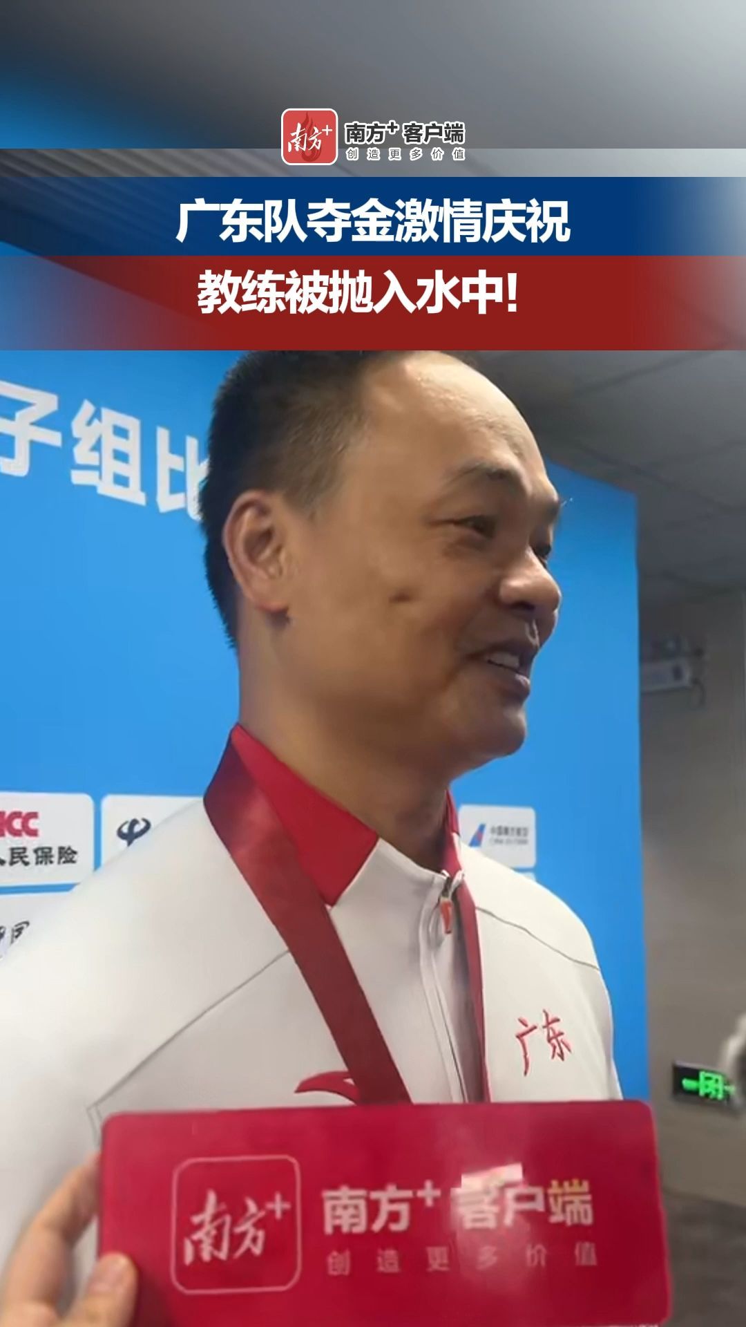 广东队夺金激情庆祝,教练被抛入水中! 陈卫汉:好久没下水了!