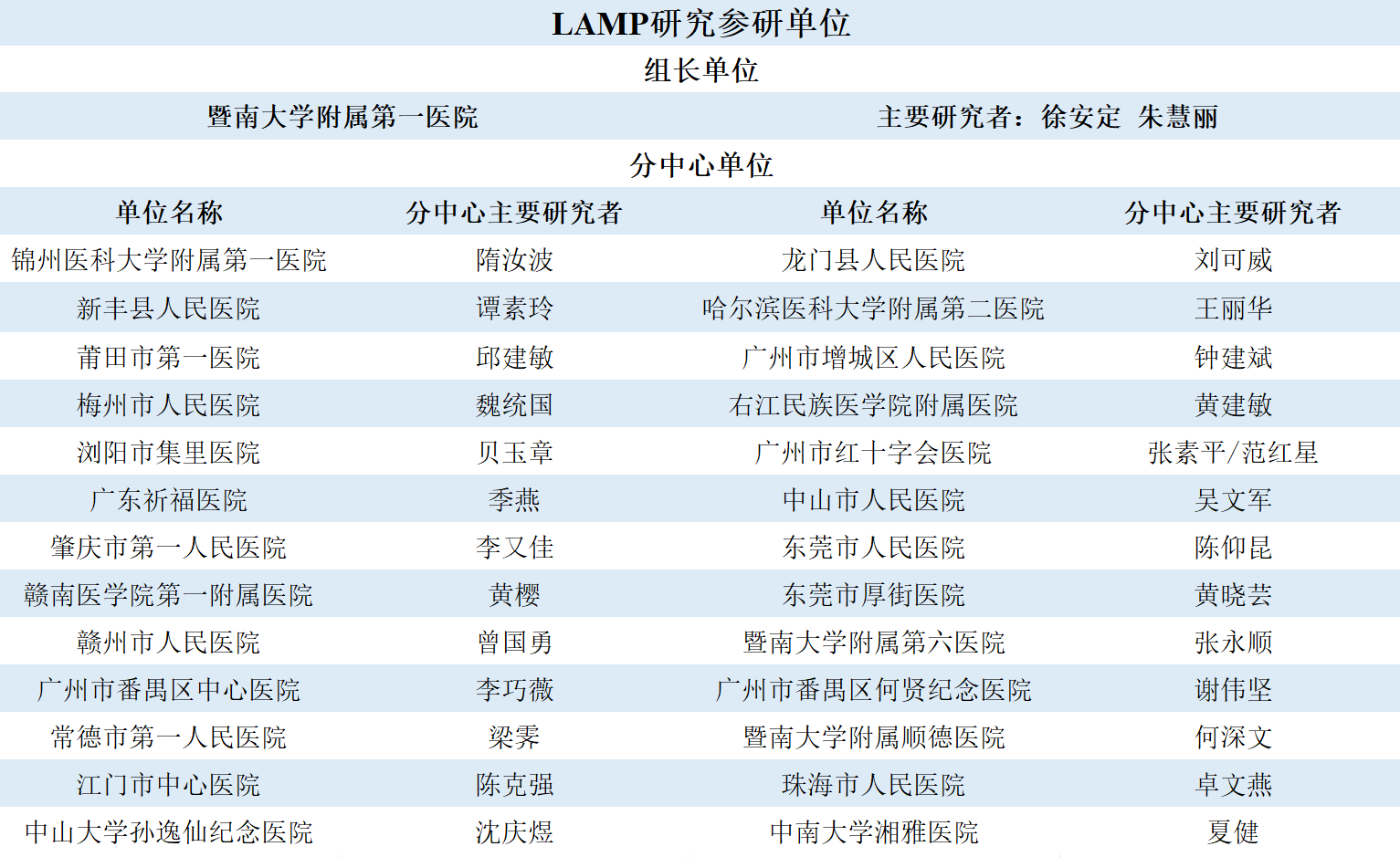 本研究由暨南大学附属第一医院神经内科朱慧丽主任医师担任唯一第一作者,暨南大学附属第一医院徐安定教授为最后通讯作者,首都医科大学附属北京天坛医院王拥军教授担任共同通讯作者,美国新泽西州罗格斯大学糖尿病专家Xiangbing Wang教授为本研究的学术委员及主要作者之一。