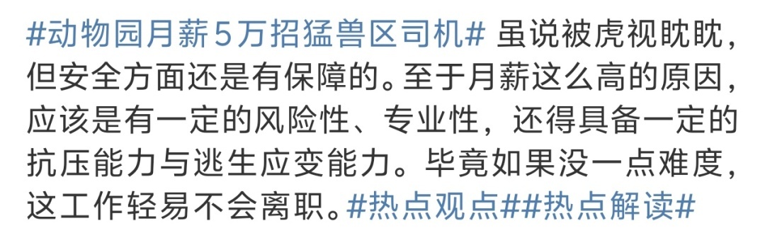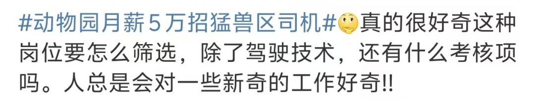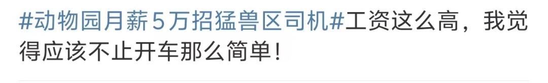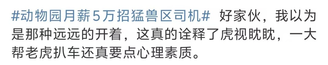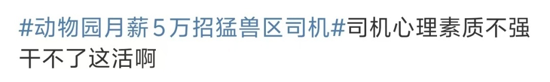10月22日,河南洛阳栾川竹海野生动物园在社交平台发出招聘视频称:“招募‘兽王驾驶员’,月薪5万元寻找最猛司机,开车进虎山熊窝”,引发热议。