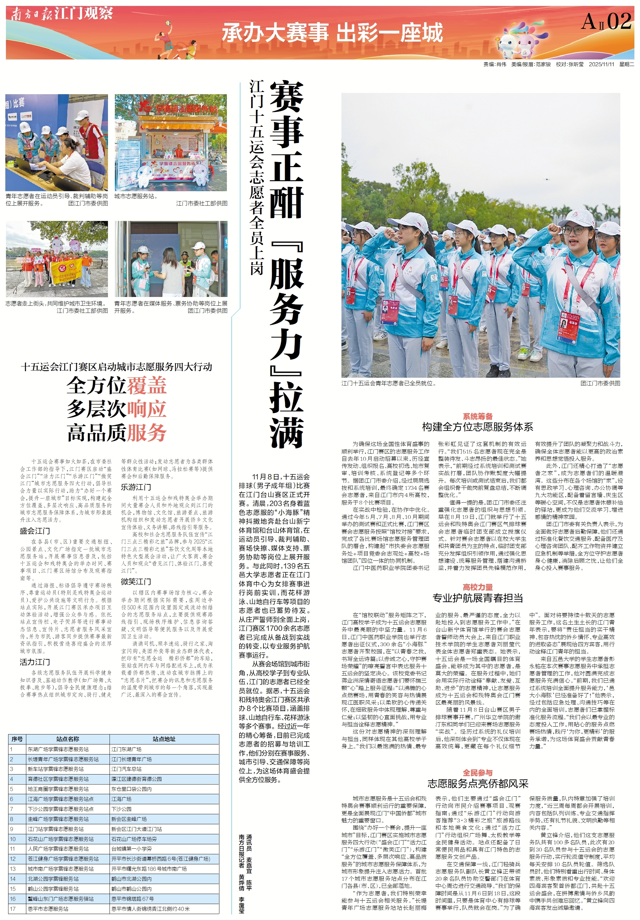 十五运会开幕式倒计时2天,江门全城随处可见志愿者忙碌的身影。