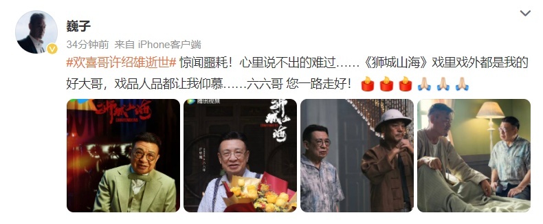 此外,多位演艺界同仁也发文悼念许绍雄。