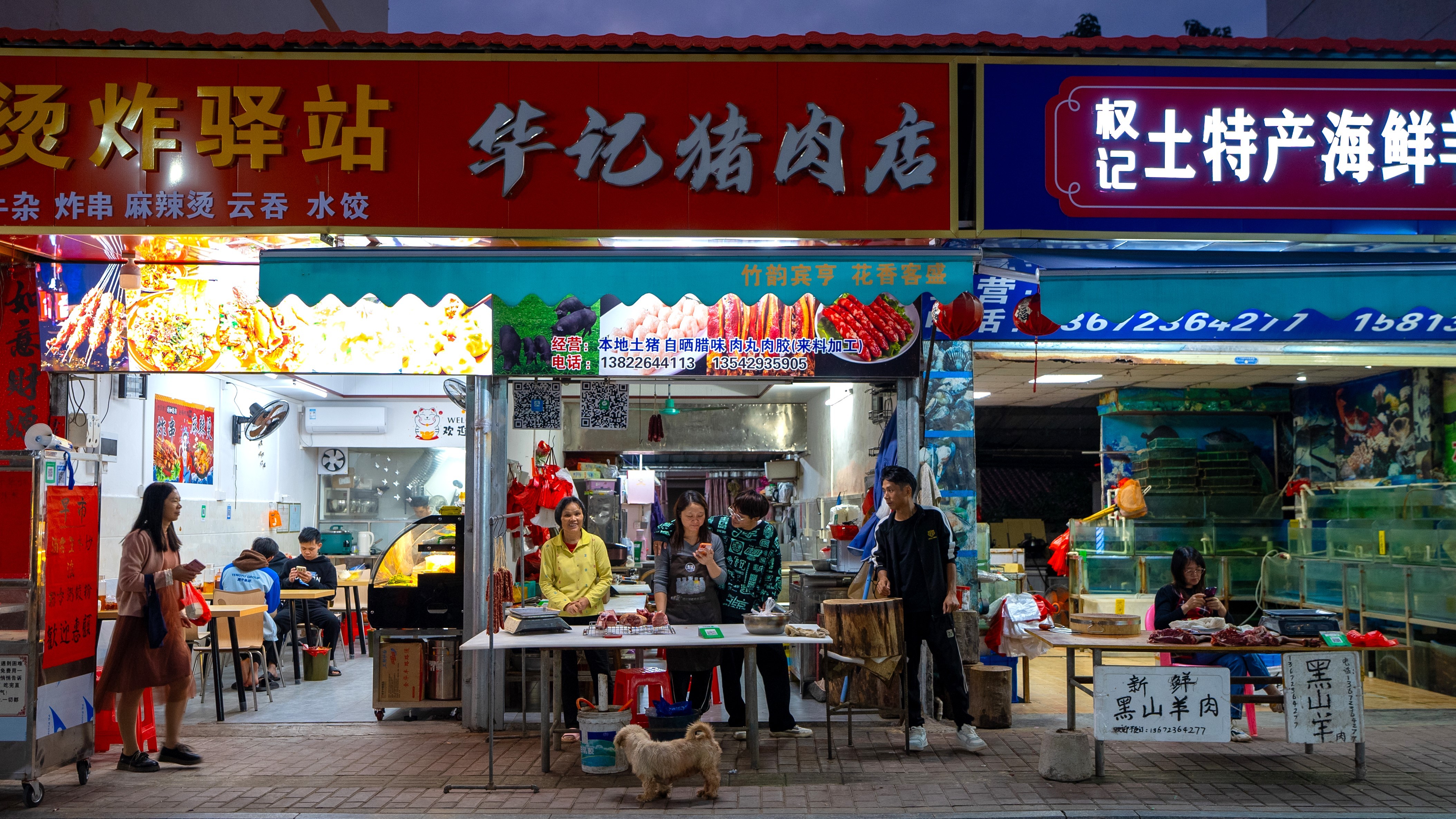 一墙之隔的炸串麻辣烫店主王姐就经常领略谢国宝的风采,也去街口舞台看过他的表演,“他唱得好听,刚刚又拿了肇庆冠军,很励志!”