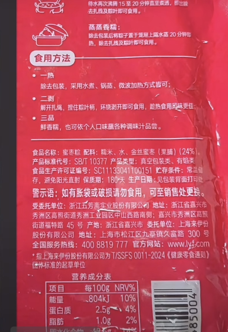 值得注意的是,此次来伊份的粽子被指系五芳斋(603237.SH)代工生产。5月12日,五芳斋客服告诉南都湾财社记者,企业已关注到相关信息,目前正在核实中,同日,记者致电嘉兴市市场监管局,电话未能接通。