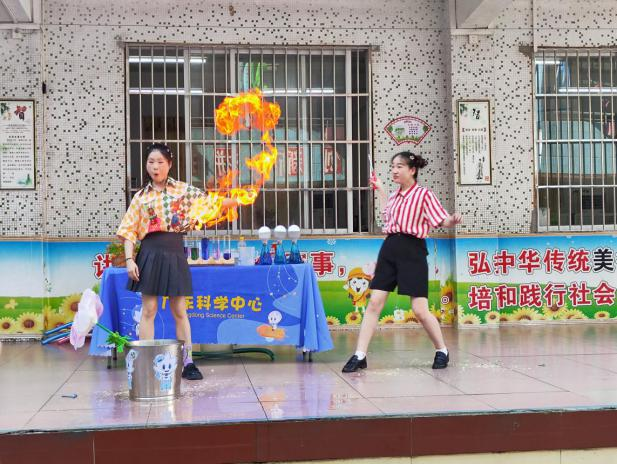 科学实验秀《奇趣派》:实验秀以默剧形式呈现,“液氮碎花”“火焰掌”等精彩环节吸引学生们争相参与,将活动氛围推向高潮,让学生在亲身体验中感受科学的神奇。