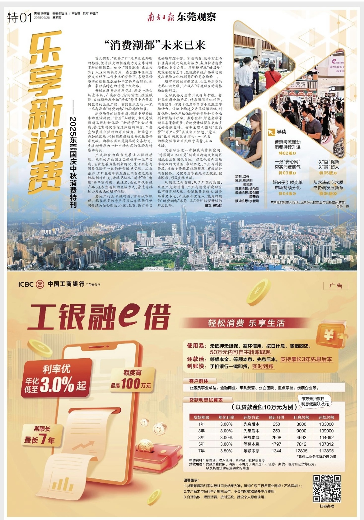 金融服务为消费升级保驾护航。银行业创新金融产品,精准滴灌实体经济,消费信贷、信用卡优惠等多重手段激发市场活力。保险业构建全方位保障网络,科技保险、知识产权保险等新型险种为企业创新撑起保护伞。数字金融、绿色金融等新业态蓬勃发展,为消费升级提供更加多元的金融支持。青年主理人借助“莞商贷”“商户e贷”实现创业梦想,“莞家福”让看病就医更省心……完善的社会保障让市民敢于消费、安心生活。