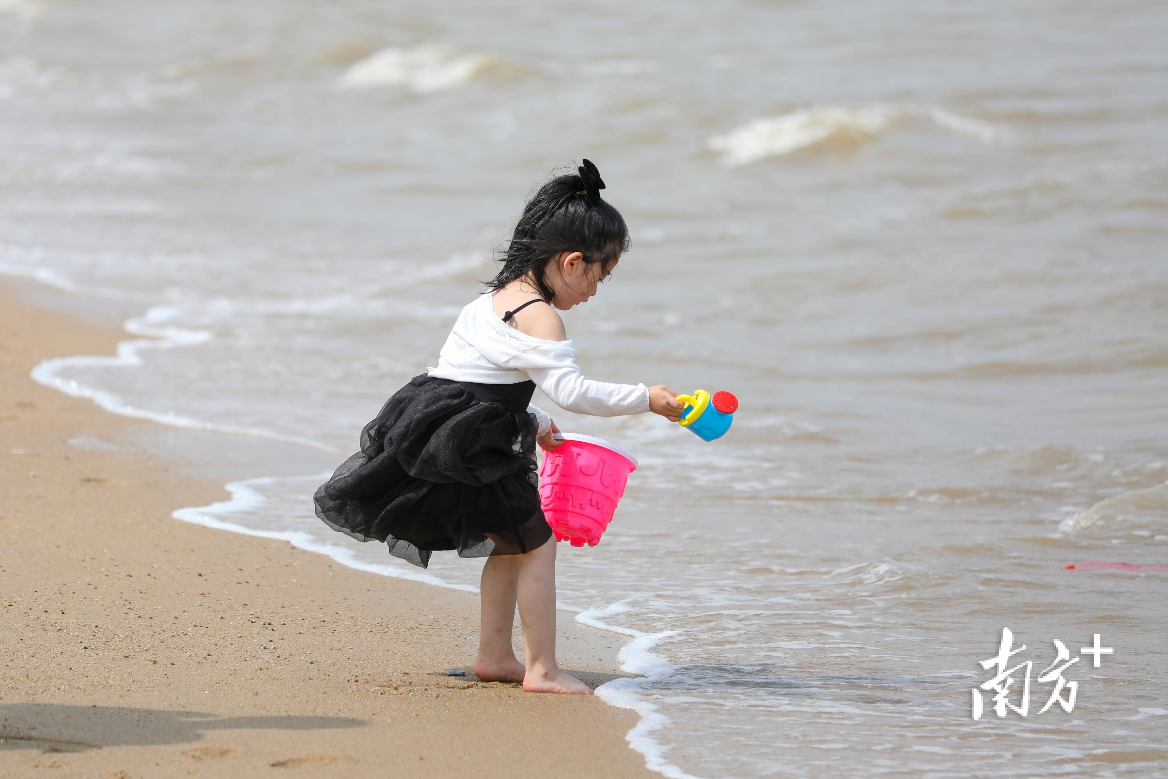 广东珠海情侣路,小朋友在沙滩上玩耍。南方+记者 钱文攀 摄