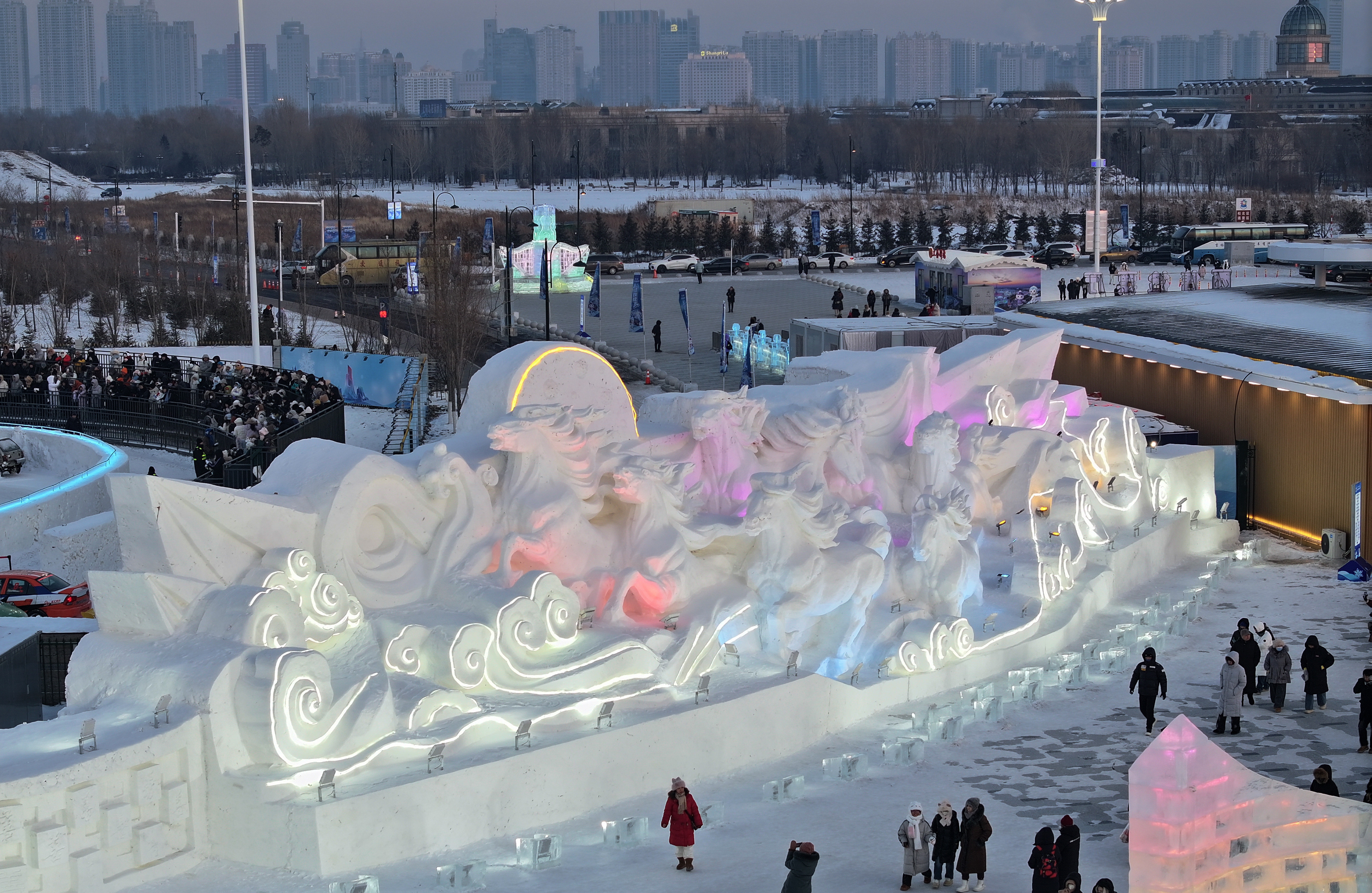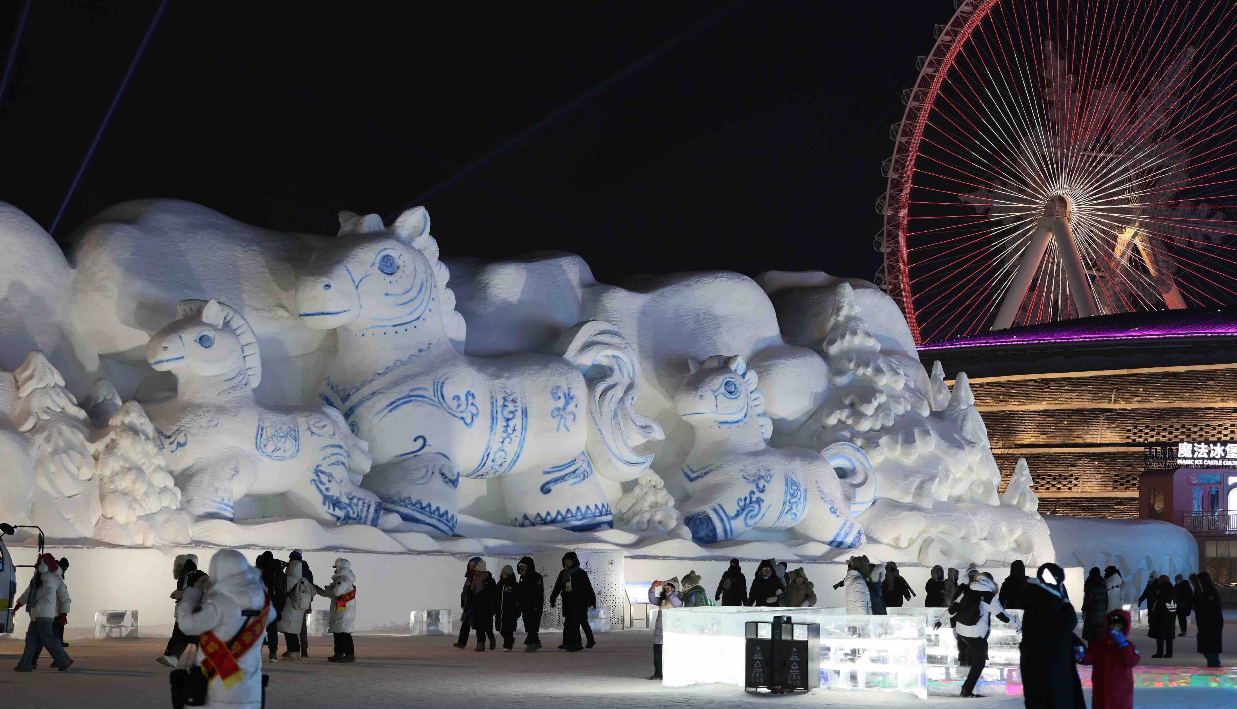 马年将至,哈尔滨冰雪大世界园区内,以“马”为主题的冰雕雪塑作品群惊艳亮相,成为游客争相打卡的焦点。晶莹的冰雕骏马昂首腾跃,雪塑的马群栩栩如生,在灯光映衬下流光溢彩,仿佛将北国冬日的活力与新春的喜庆融为一体。游客们驻足观赏,用镜头记录这独特的艺术盛宴,寒风中涌动着对新春的美好期许。 订阅后可查看全文(剩余80%)