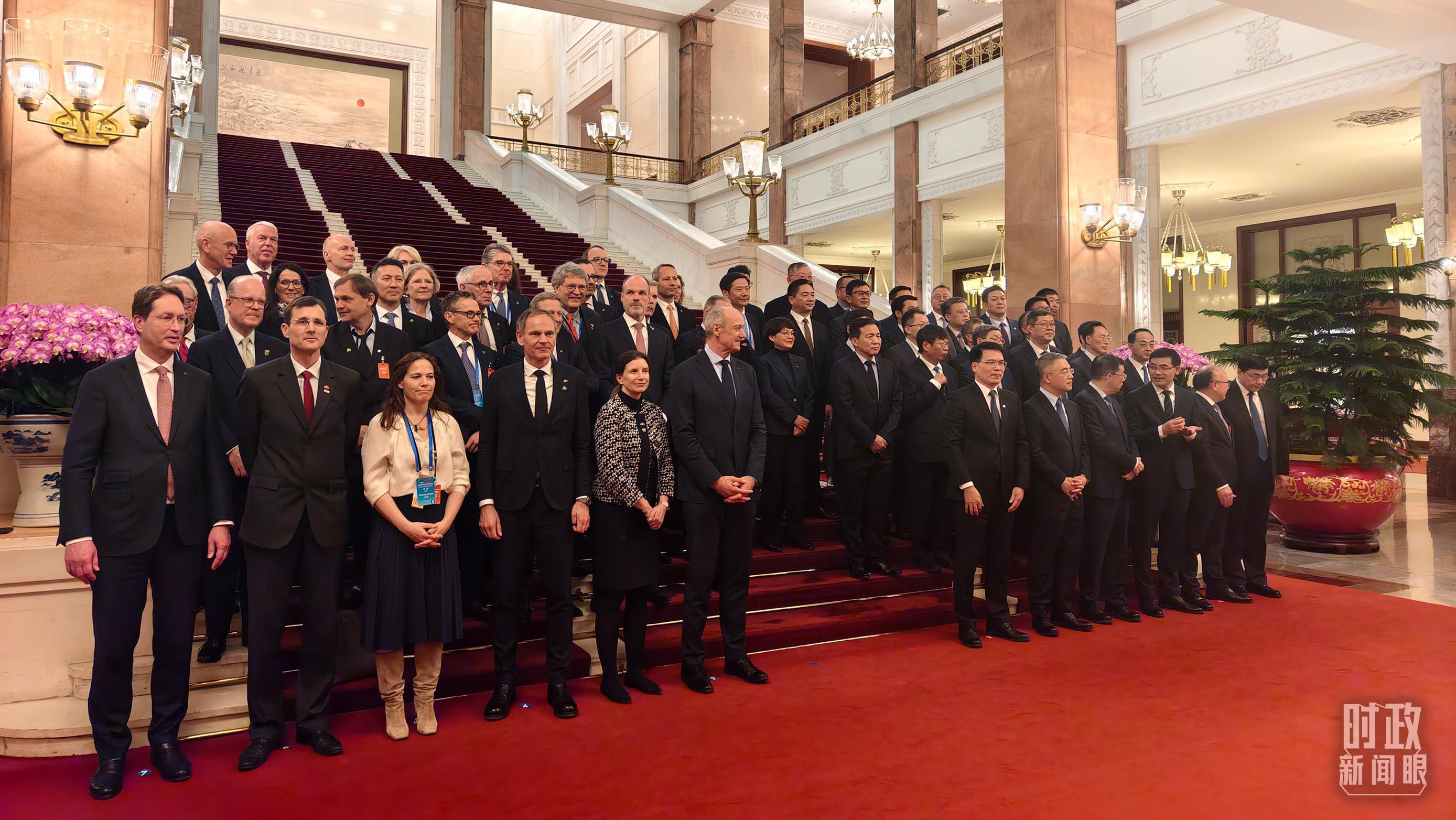 △2月25日下午,出席中德经济顾问委员会座谈会的中德企业代表在等待合影。(总台央视记者胡玮拍摄)