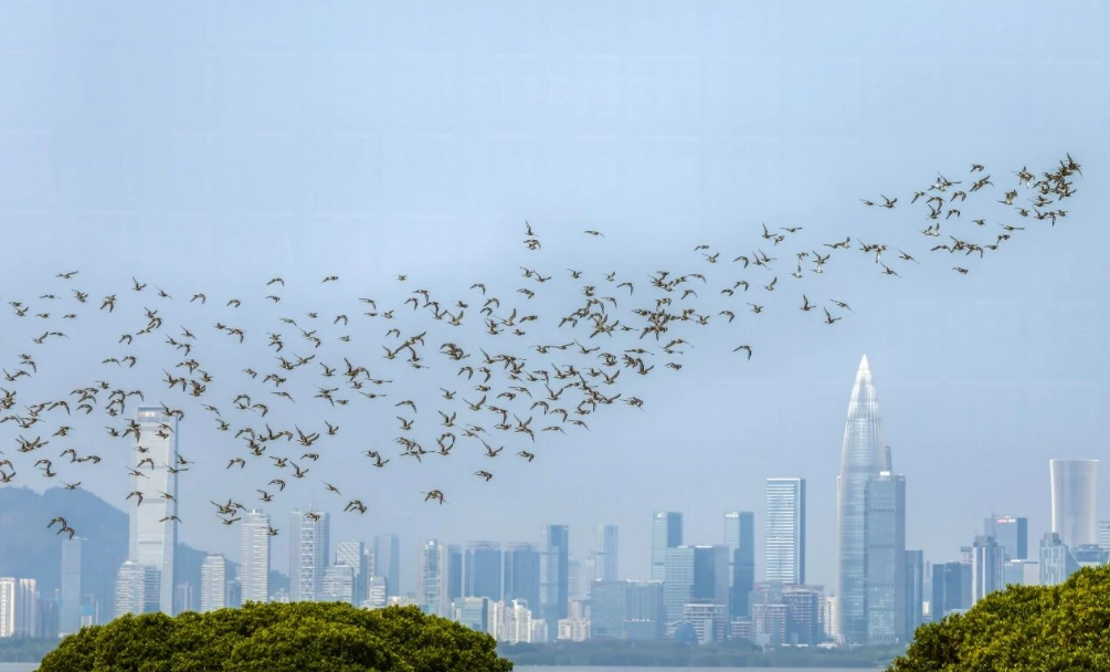 候鸟与深圳湾畔地标建筑同框(往期图片)