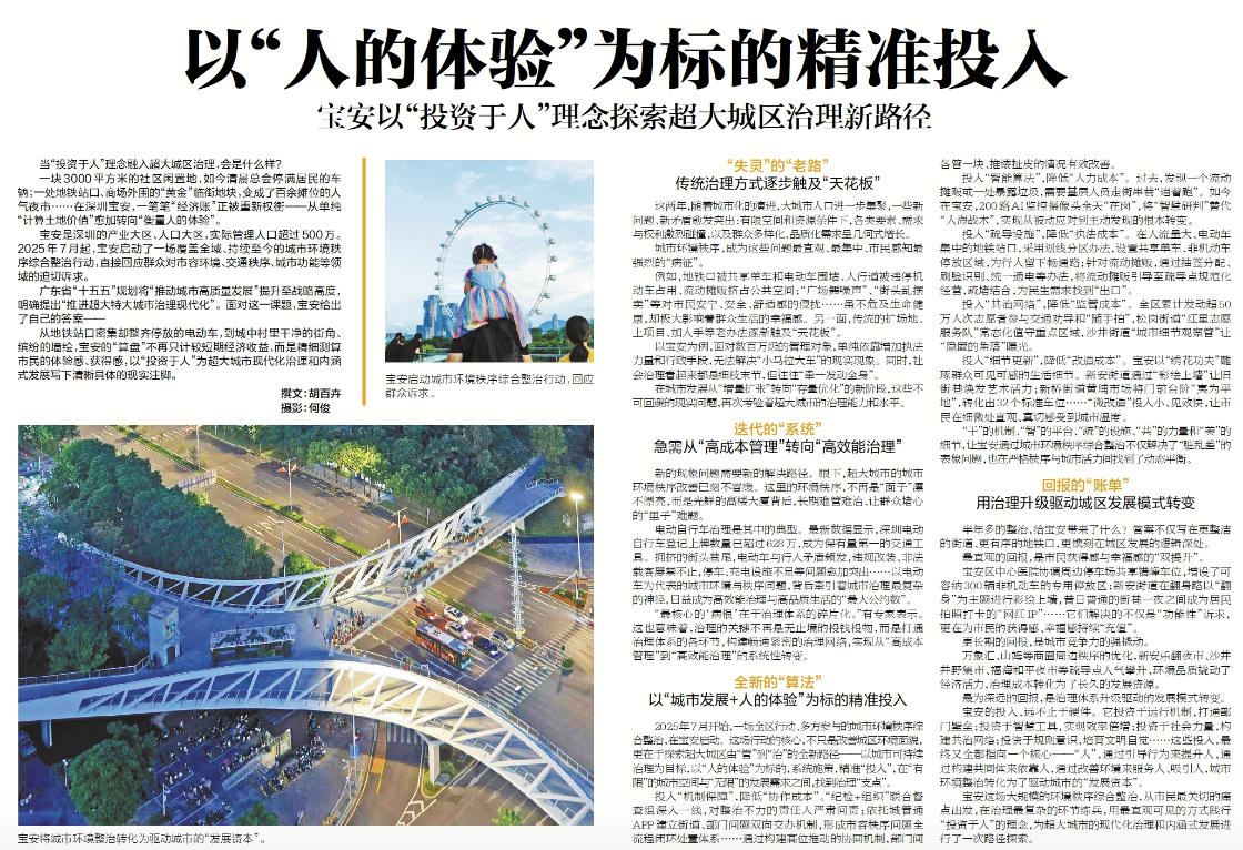 宝安的投入,远不止于硬件。它投资于运行机制,打通部门壁垒;投资于智慧工具,实现效率倍增;投资于社会力量,构建共治网络;投资于规则意识,培育文明自觉……这些投入,最终又全都指向一个核心——“人”,通过引导行为来提升人,通过构建共同体来依靠人,通过改善环境来服务人、吸引人,城市环境整治转化为了驱动城市的“发展资本”。