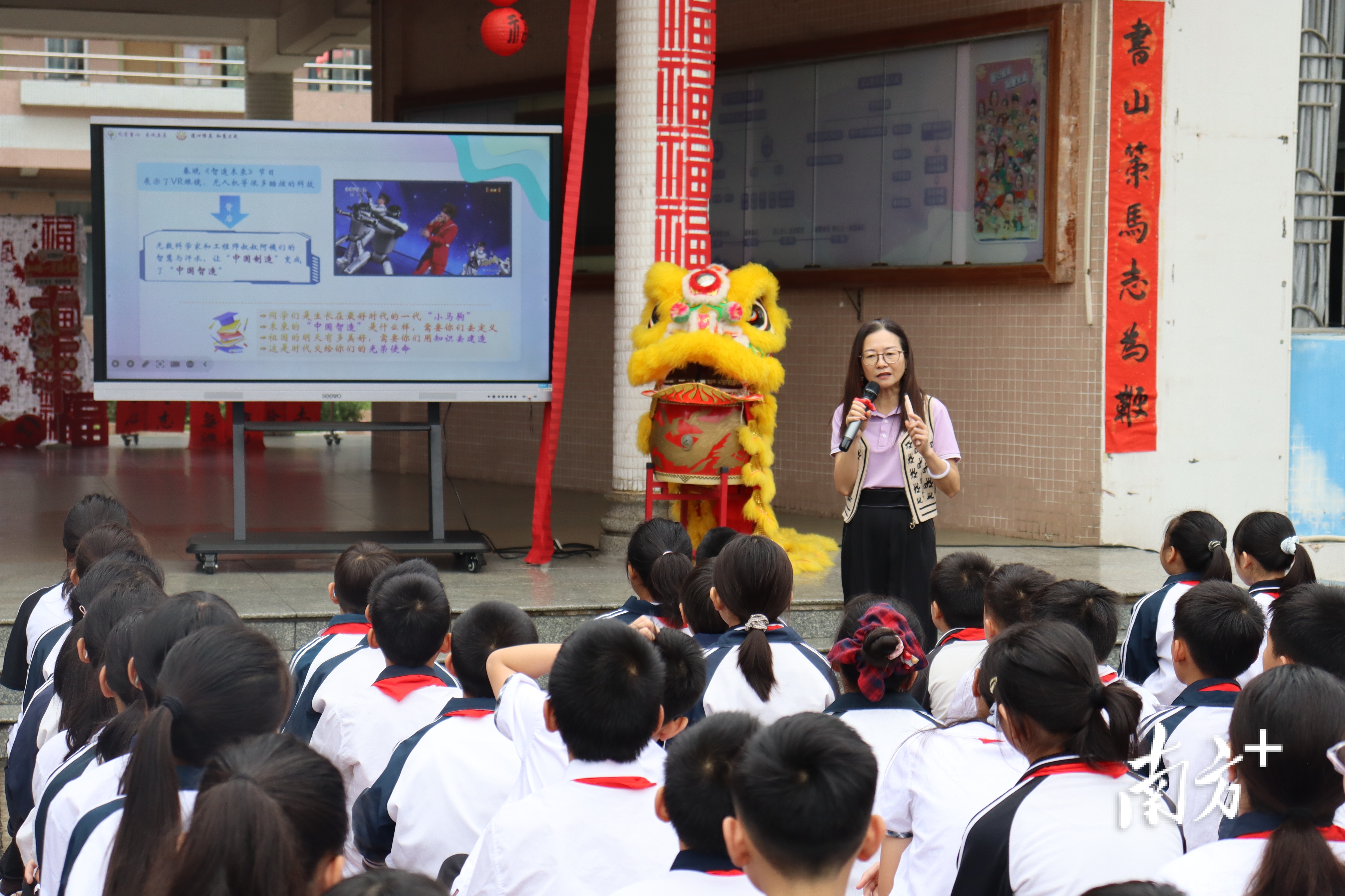 “我们要把‘广东少年·强国有我’的誓言刻在心里、落在行动上。”夏荣群从厚植爱国情怀、感悟科技伟力、践行社会主义核心价值观三个维度,为学生带来了一堂意义深远的思政课。