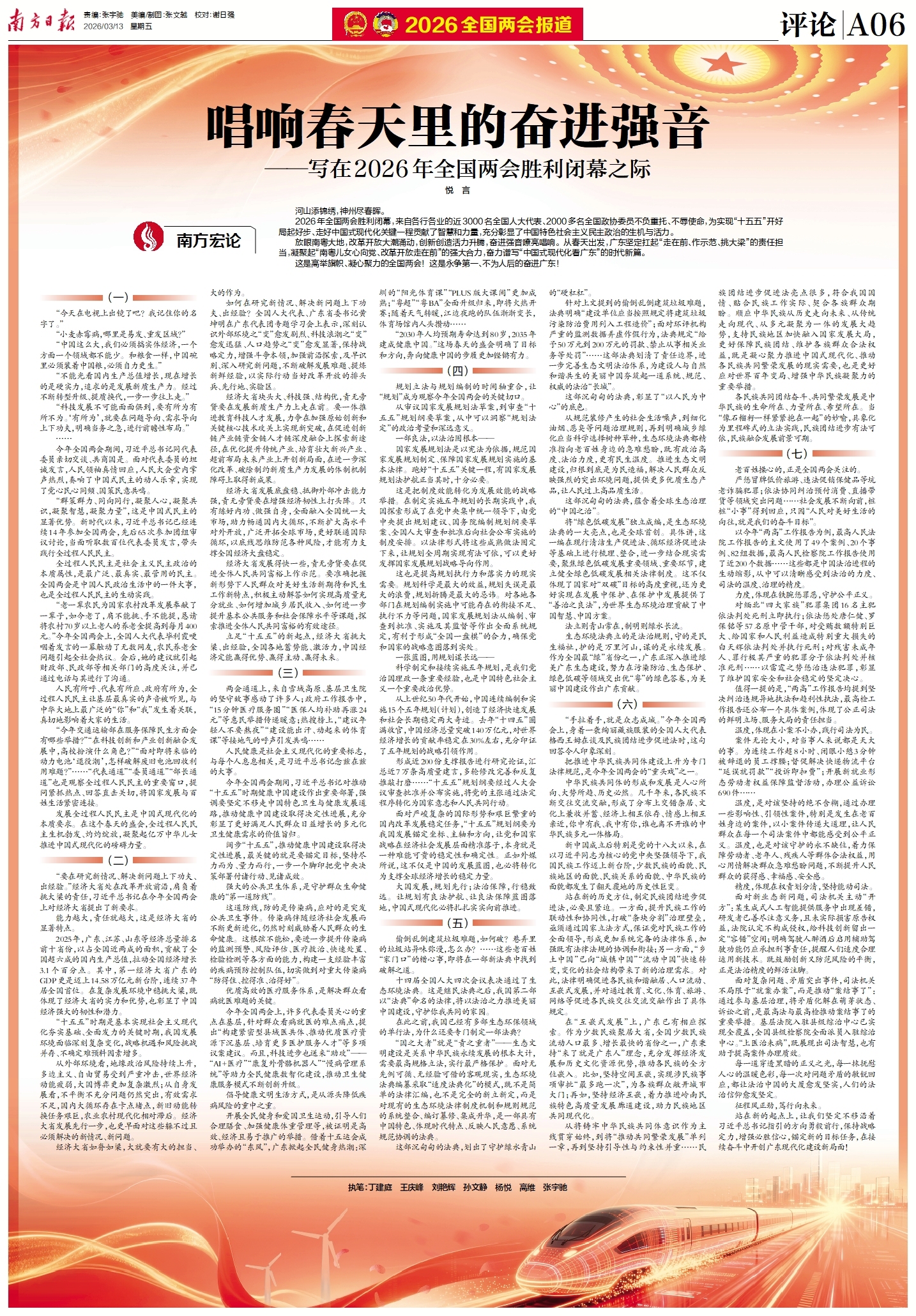 2026年全国两会胜利闭幕,来自各行各业的近3000名全国人大代表、2000多名全国政协委员不负重托、不辱使命,为实现“十五五”开好局起好步、走好中国式现代化关键一程贡献了智慧和力量,充分彰显了中国特色社会主义民主政治的生机与活力。