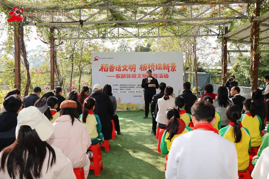 为深入推进“百千万工程”,以文明实践赋能乡村生产生活,助力和美乡村建设,1月6日,“稻香话文明 板桥绘新景”农耕体验文明实践活动在番禺区南村镇板桥村美丽田园火热开展。本次活动由番禺区新时代文明实践中心、番禺区文明办、南村镇新时代文明实践所、南村镇团委、板桥村新时代文明实践站等单位联合主办,番禺区工人文化宫承办,吸引60余名群众参与。在稻香阵阵中感悟农耕文化魅力,在实践体验中涵养文明新风,为农村精神文明建设注入鲜活动力。