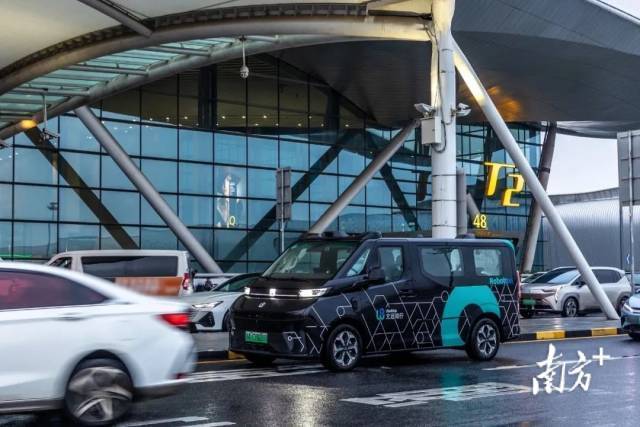 文远知行自动驾驶出行服务车辆在广州白云国际机场T2航站楼。
