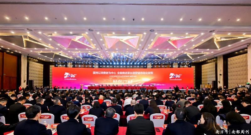 12月28日下午,2026年贵州茅台酒全国经销商联谊会在贵阳举办,南都湾财社-酒水新消费指数课题组记者在现场了解到,贵州茅台对茅台酒2026年市场营销进行了定调:“坚持以消费者为中心,全面推进茅台酒营销市场化转型。”