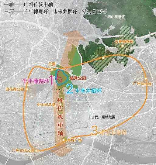 一轴:广州传统中轴,守护城市根基与精神,承启广府千年文脉;三环:千年穗粤环、未来共栖环、活力公园环 ,贯通时空脉络链接历史、自然与未来;多点:以演艺、活动、市集等多元场景为引爆节点,营造灯会鲜活场景点燃日常烟火与创意。