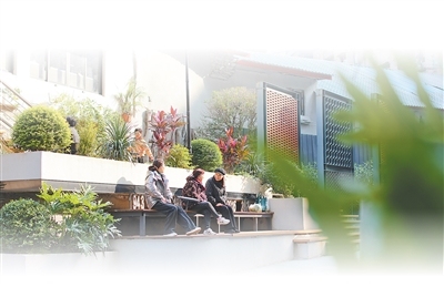 重庆市沙坪坝区沙坪坝街道一心村社区,居民在更新改造后的街巷休息。孙凯芳摄(影像中国)