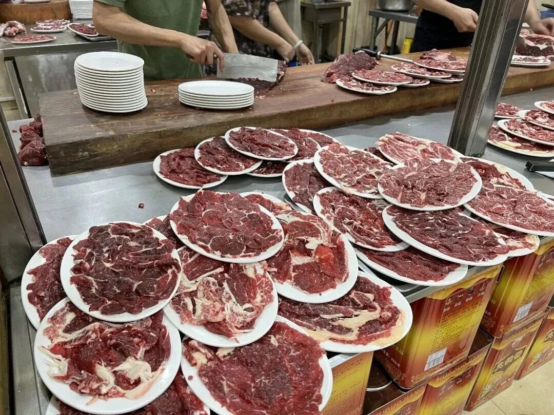 一进门就闻到香浓的牛肉味道,右手边有好几个师傅在不停的切着新鲜的牛肉,这个场面属实壮观!