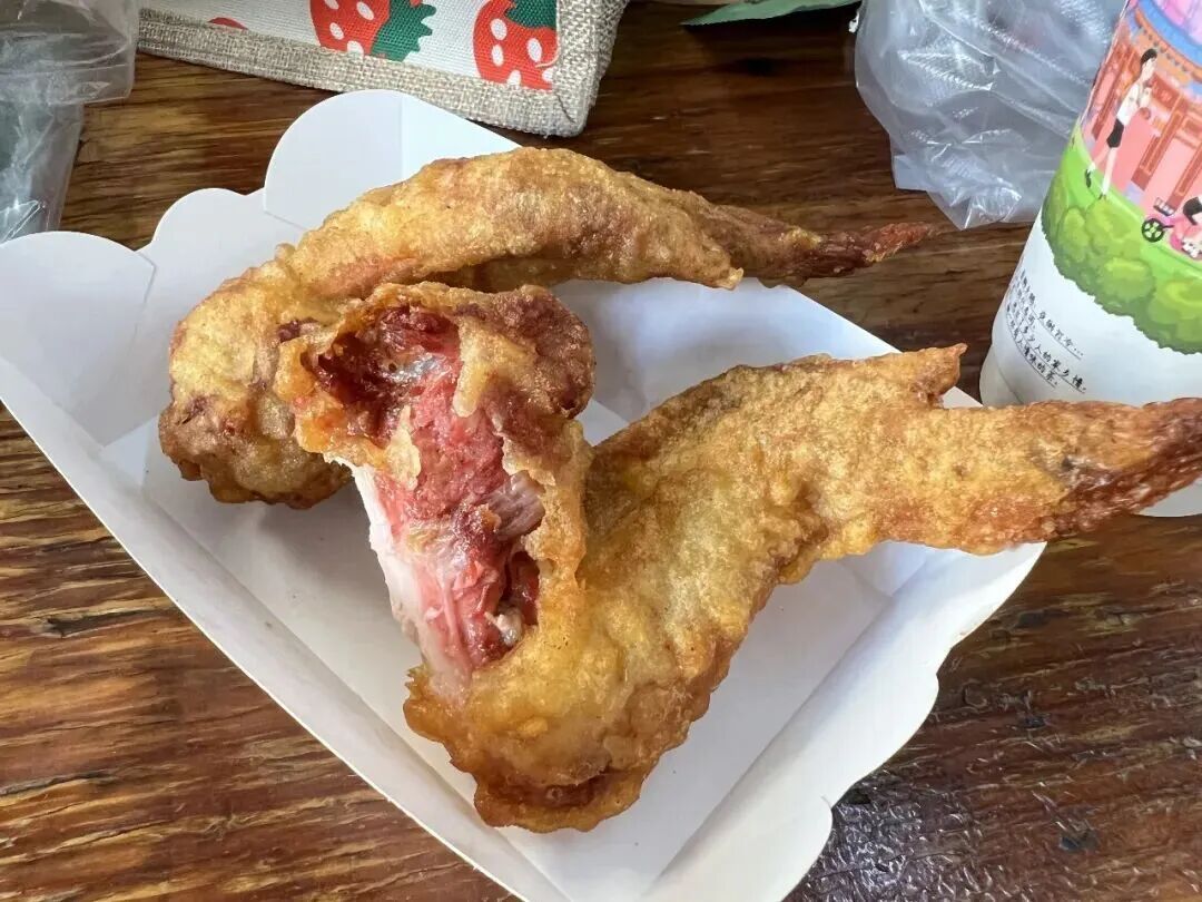 后面我们又在街上随便买了一家,这次炸鸡翅的外表虽然没有芝麻,但是鸡翅腌制得很入味!南乳味很香!