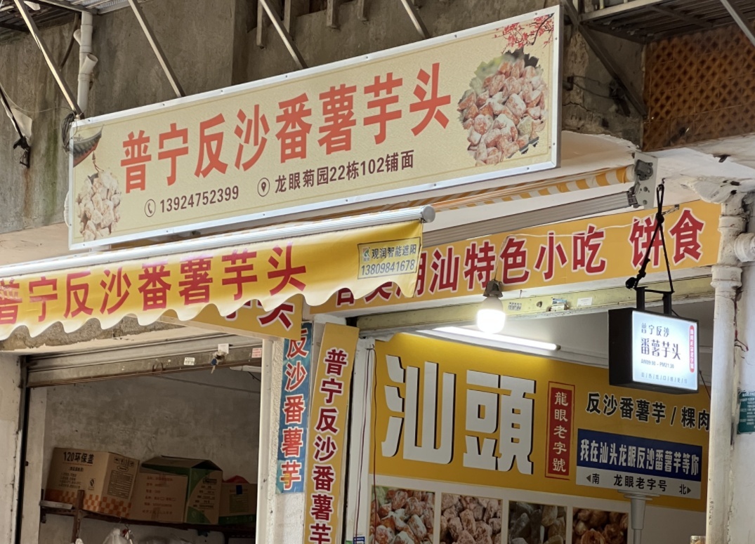在一个小巷子里,我们找到了一家普宁反沙番薯芋头,最最真的很爱吃!