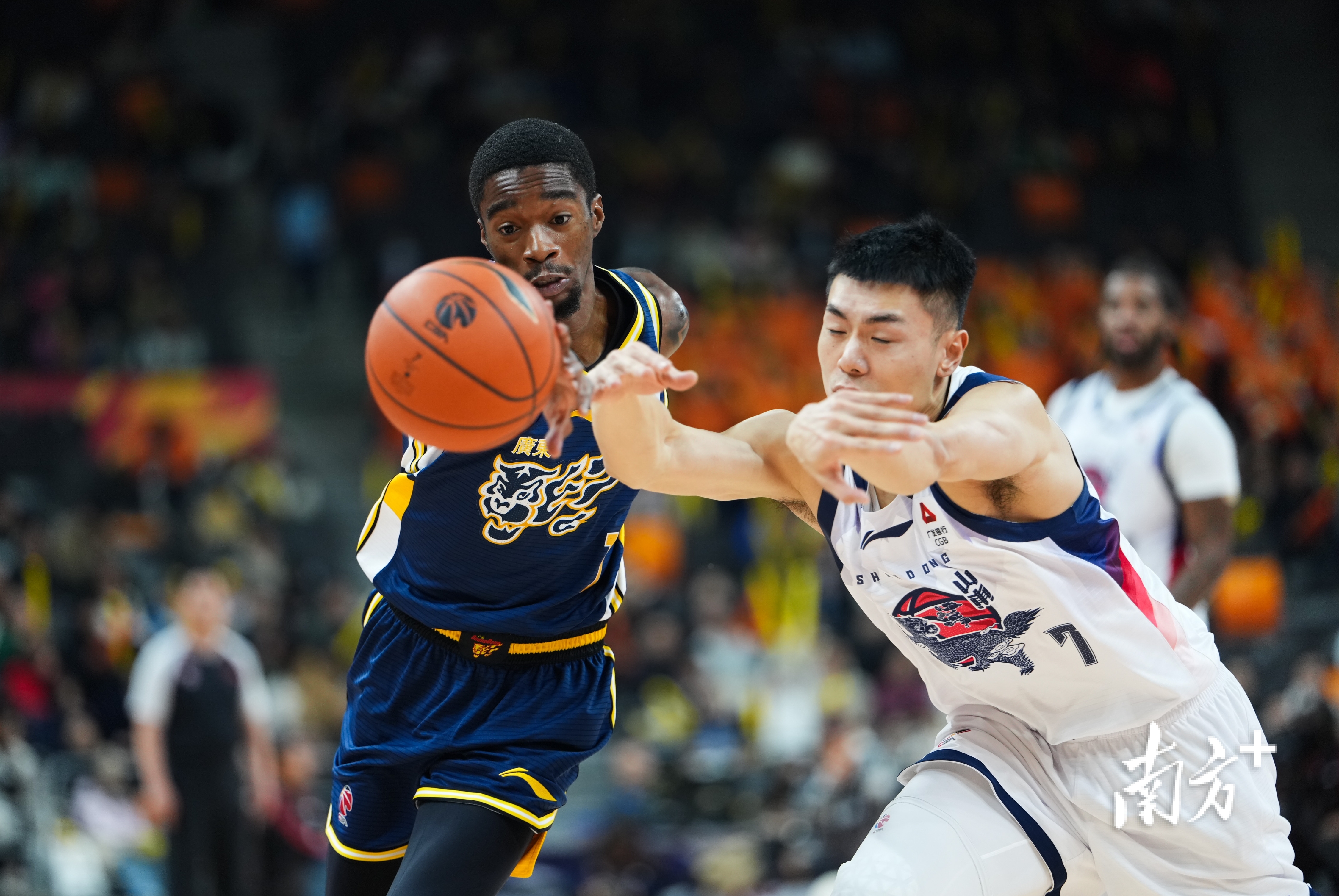 本场比赛进程跌宕起伏。首节伊始,双方迅速进入状态,攻防转换节奏明快。山东队外援珀塞尔率先造犯规罚球得分,广东队张文逸随即命中三分还以颜色,两队比分交替上升。首节中段,广东队凭借严密防守掀起反击浪潮,打出12∶0的攻击波建立领先优势,首节战罢以31∶23领先8分。
